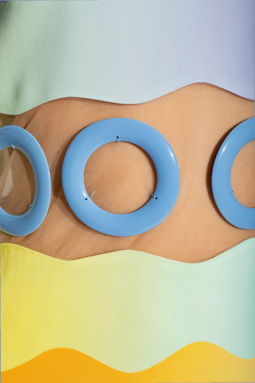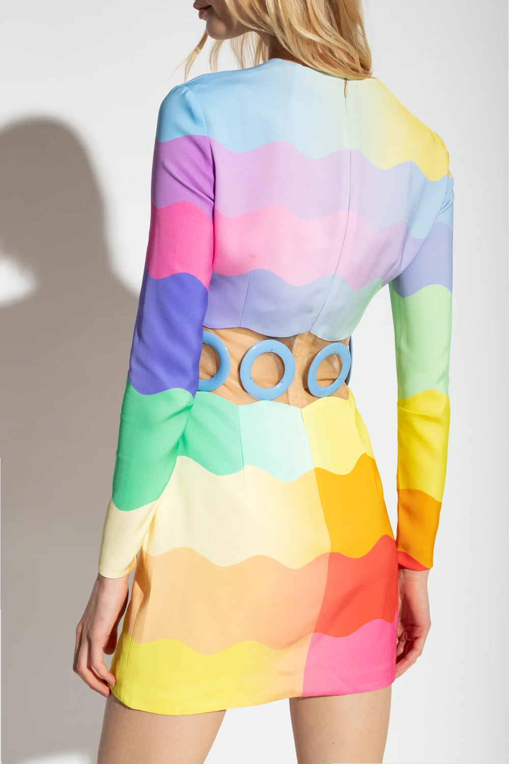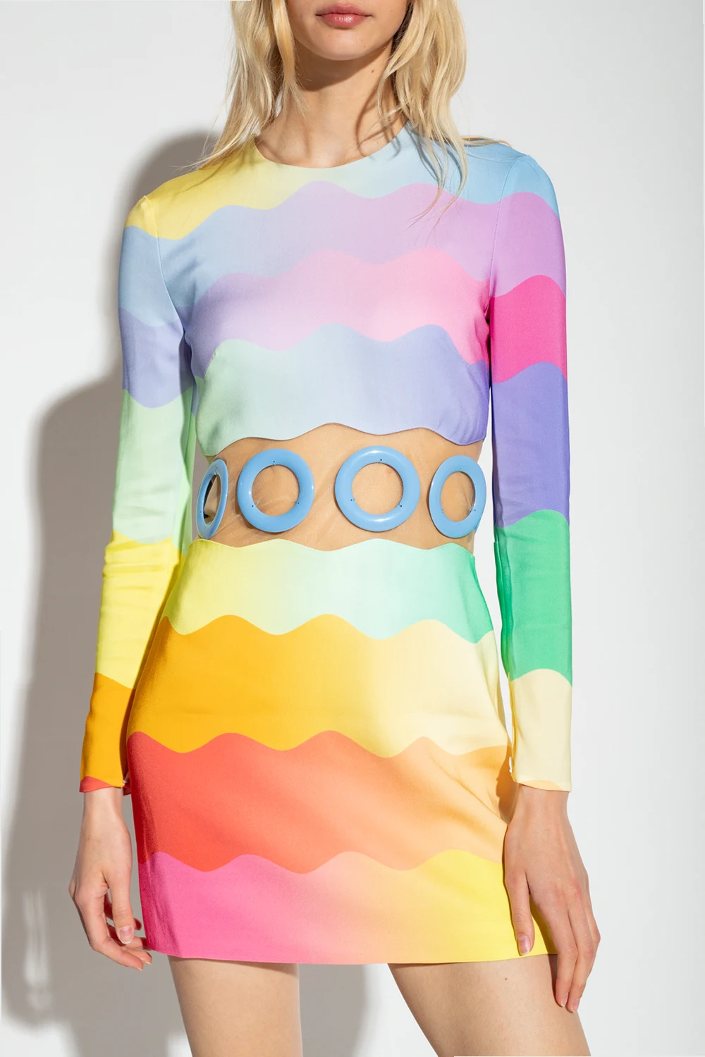 Multicolored dress from Casablanca. Fastened with a concealed back zip, this design features a transparent insert with round appliqués, round neck and long sleeves with zip details.