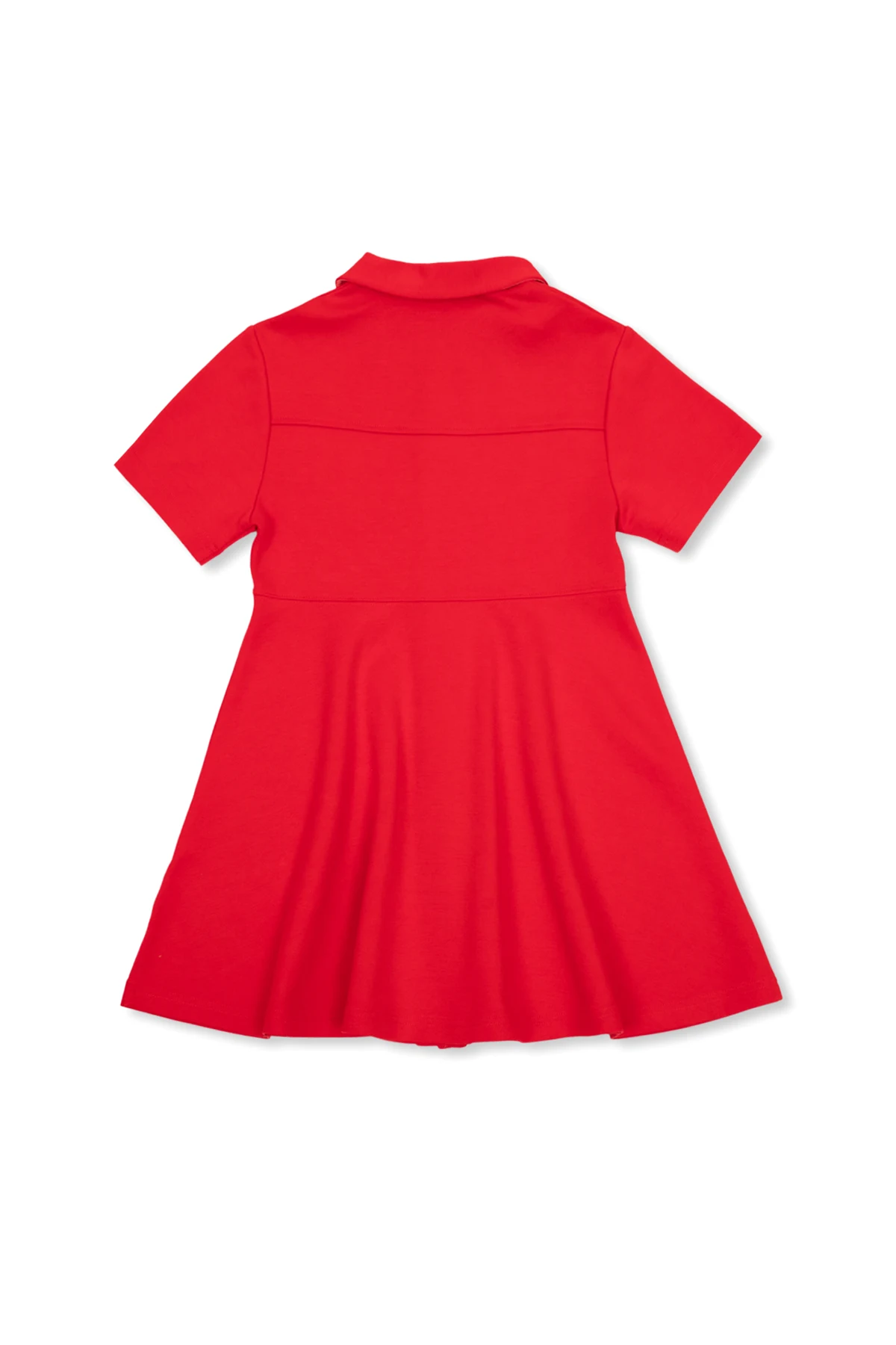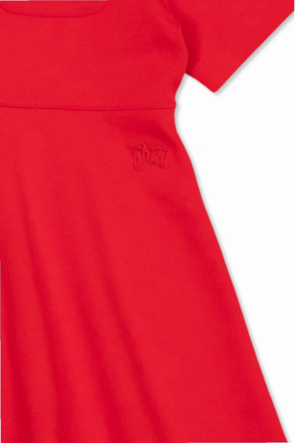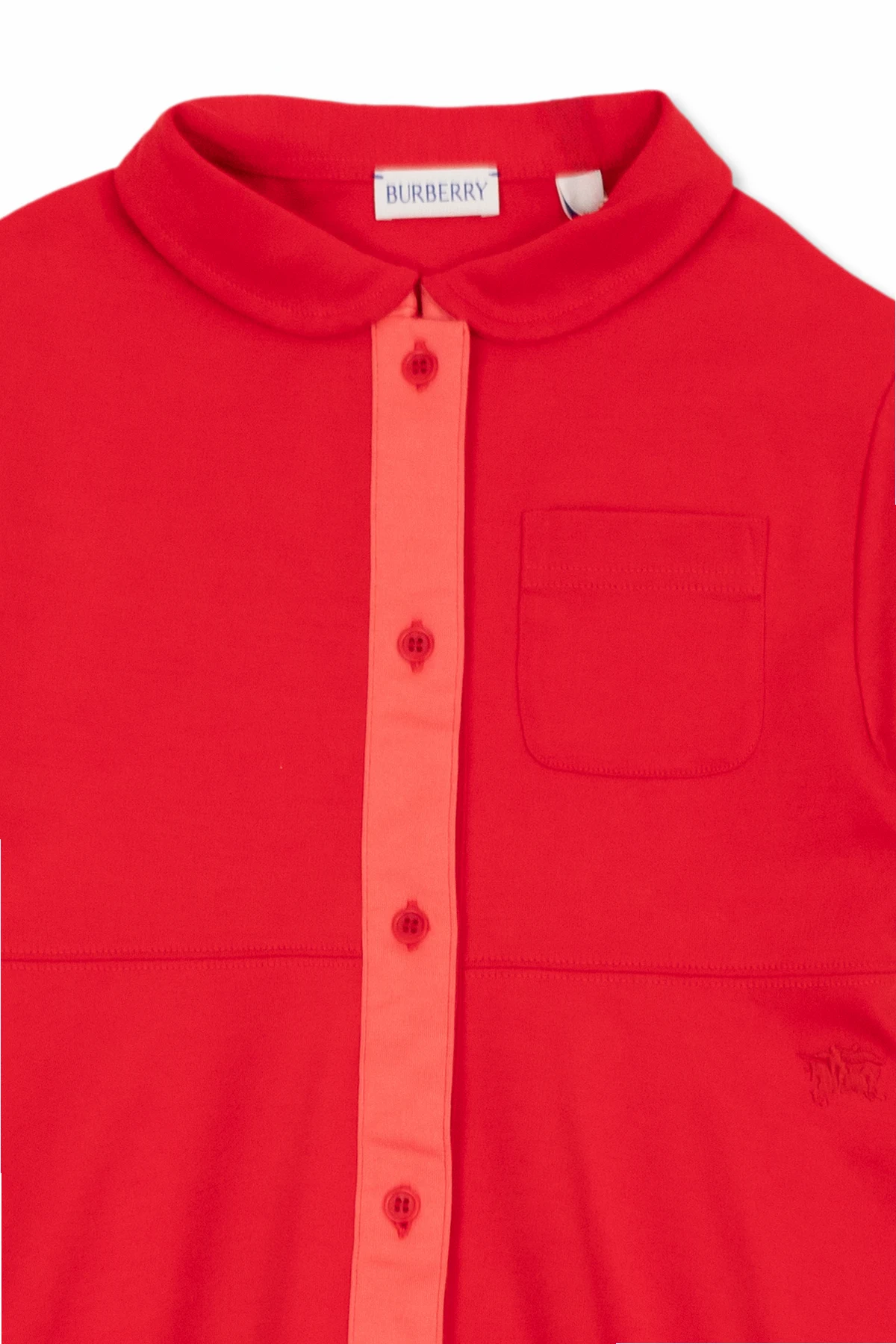 Red dress from Burberry Kids. Made of cotton, this style features button fastenings on the front, short sleeves and a frontal pocket accompanied by an embroidered logo.