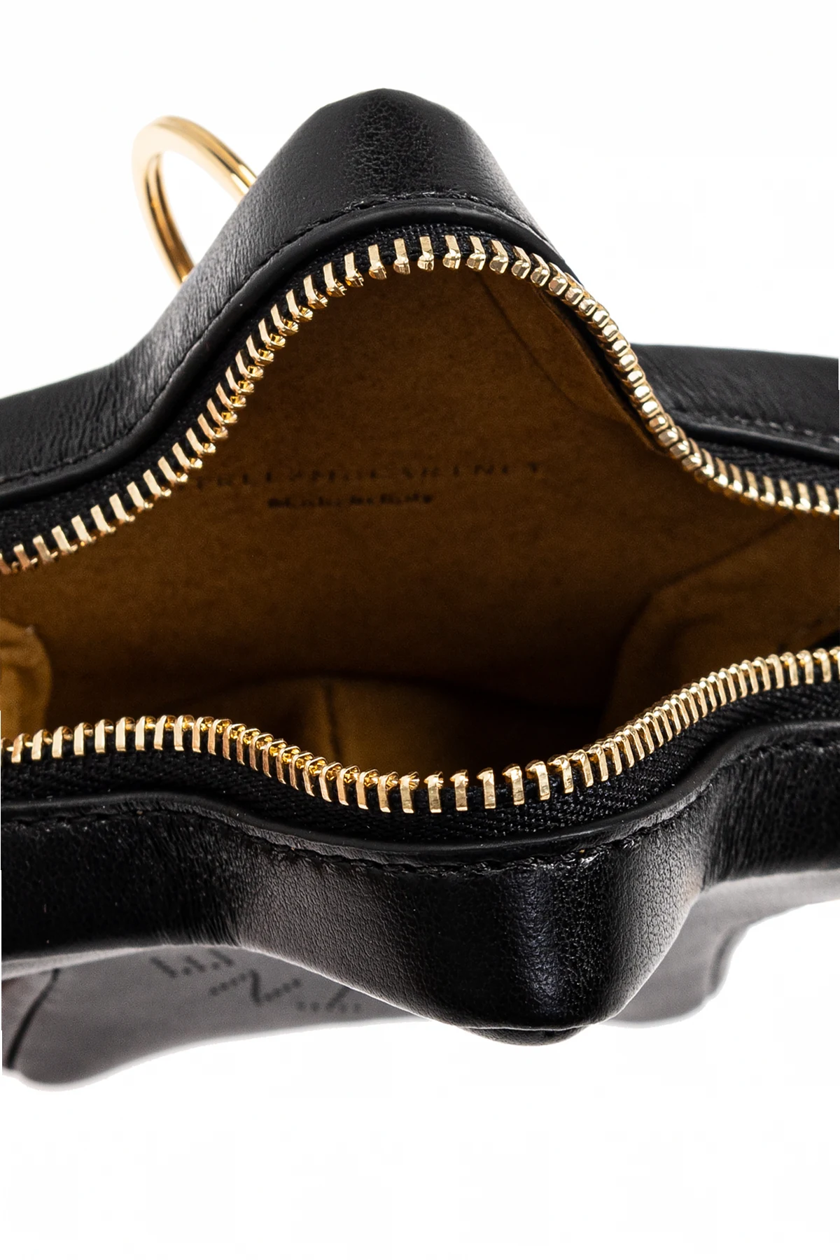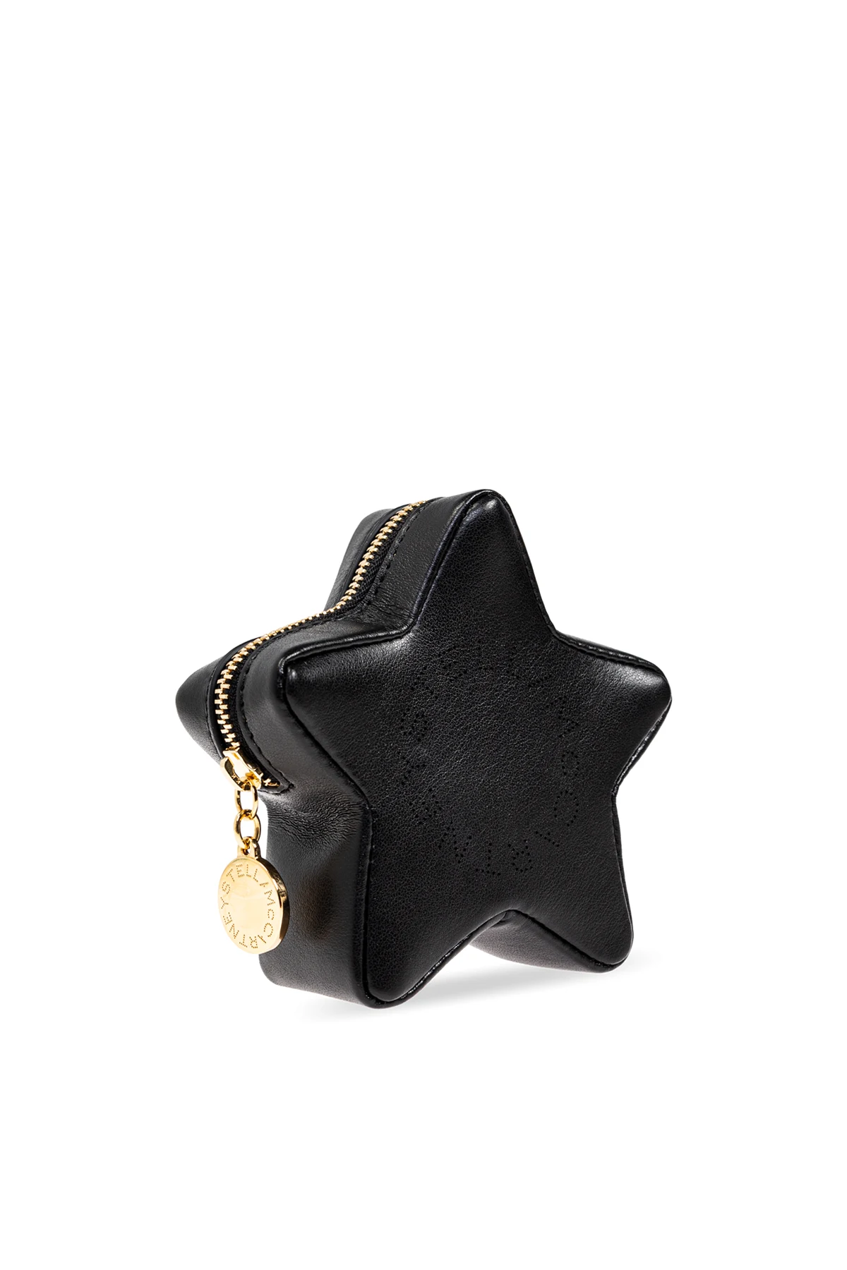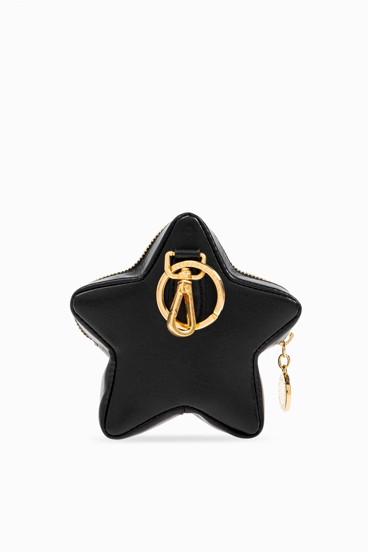 Gefertigt aus veganem Leder , beeindruckt das Täschchen mit einer glatten Textur und schwarzer Farbe . Ein Reißverschluss in Goldton und die Prägung mit dem Namen der Designerin – Stella McCartney – unterstreichen seinen exklusiven Charakter. Der goldene Schlüsselanhänger am Reißverschluss verleiht nicht nur Stil, sondern ermöglicht auch das Befestigen des Täschchens an einer größeren Tasche oder Schlüsseln.