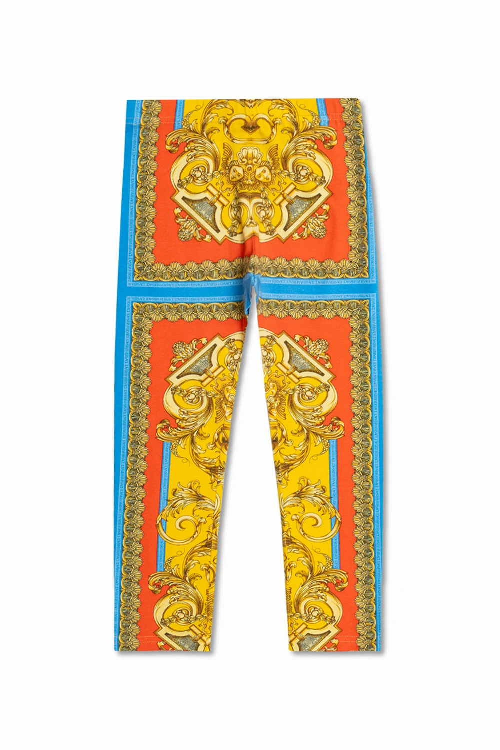 Multicolored leggings from Versace Kid. Made of cotton, this pair features an elastic waistband and Barocco Goddess pattern.