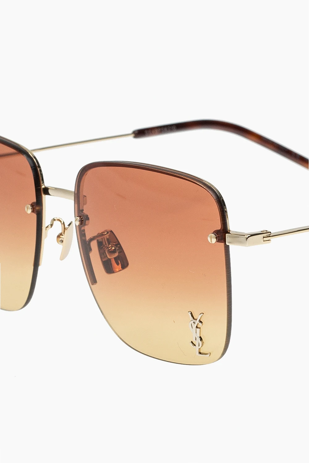 Gold-tone ‘SL 312 M’ sunglasses from Saint Laurent. This model is decorated with a raised metal logo appliqué, has certified orange lenses with 100% UVA/UVB protection and comes with a black case.