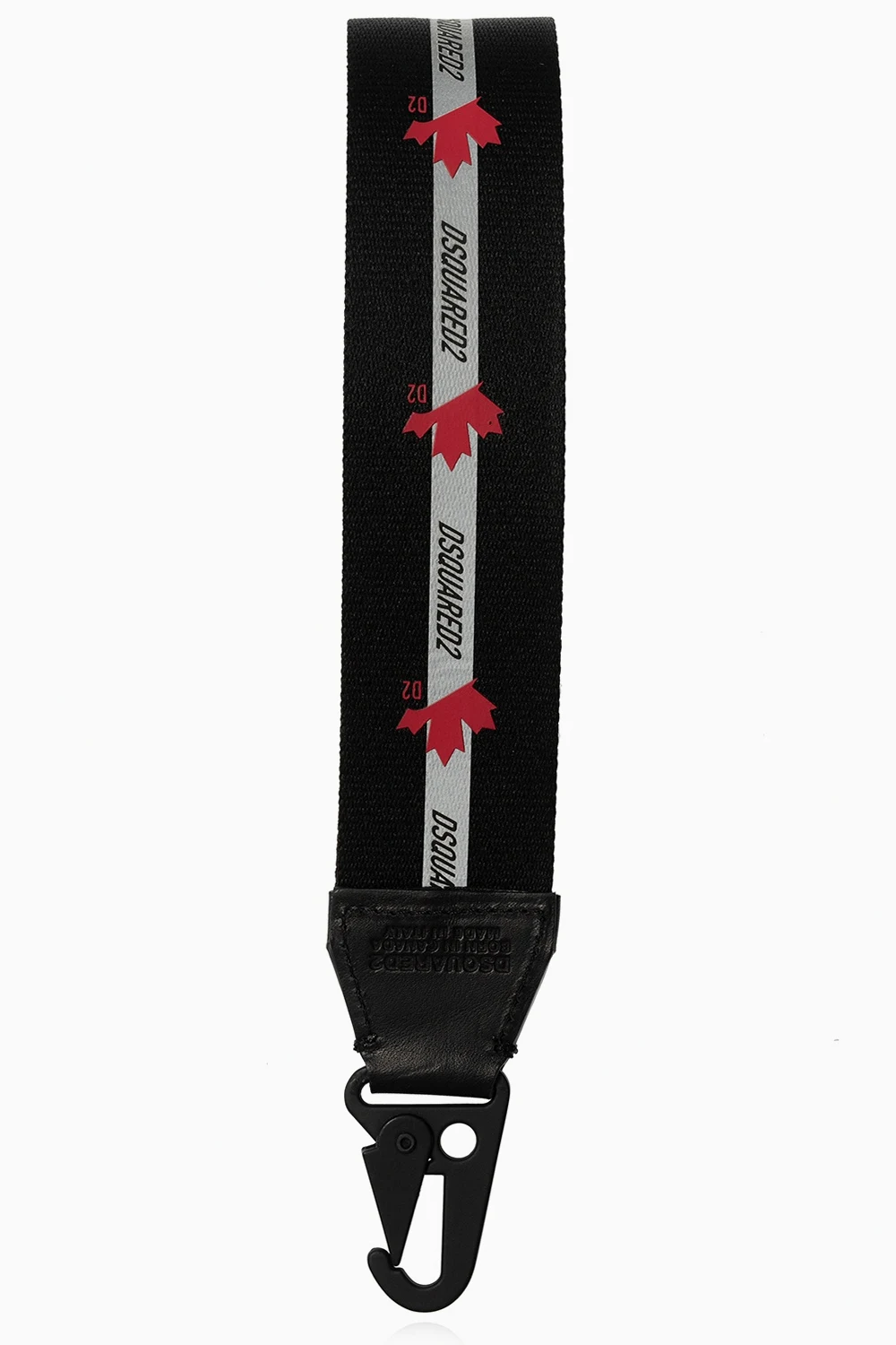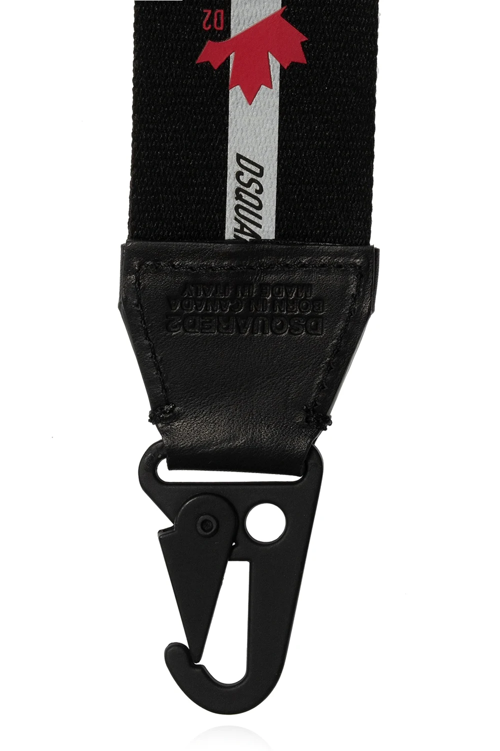 Black key lanyard from Dsquared2. Embellished with a grey and red logo print, this item features a black hook fastening.