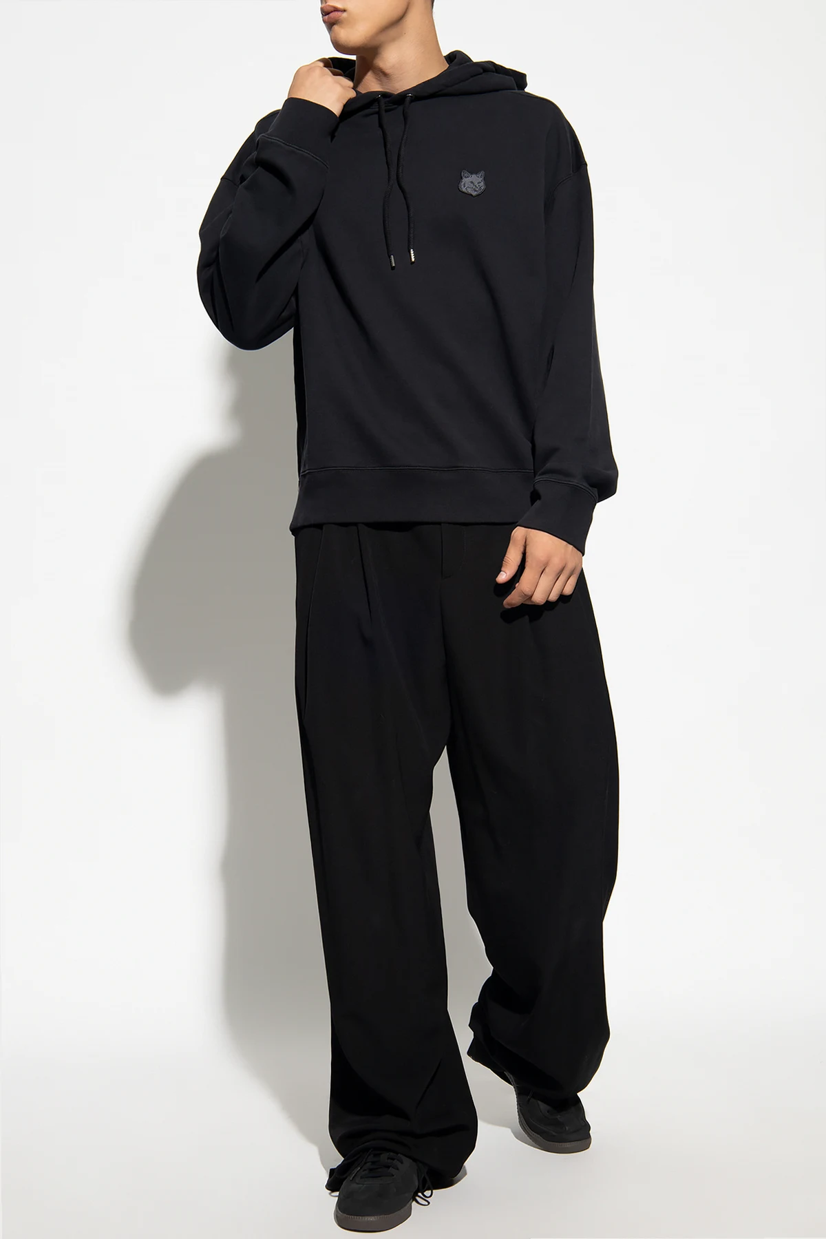 Black hoodie from Maison Kitsune. Crafted from cotton, this garment is complete with a drawstring hood, logo patch and ribbed trims at the hem and cuffs.