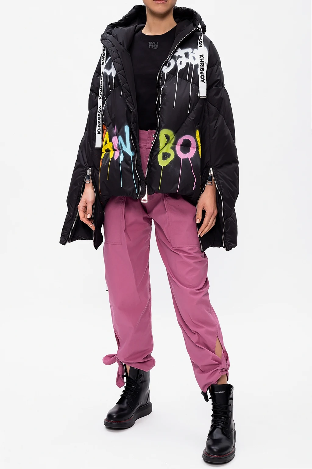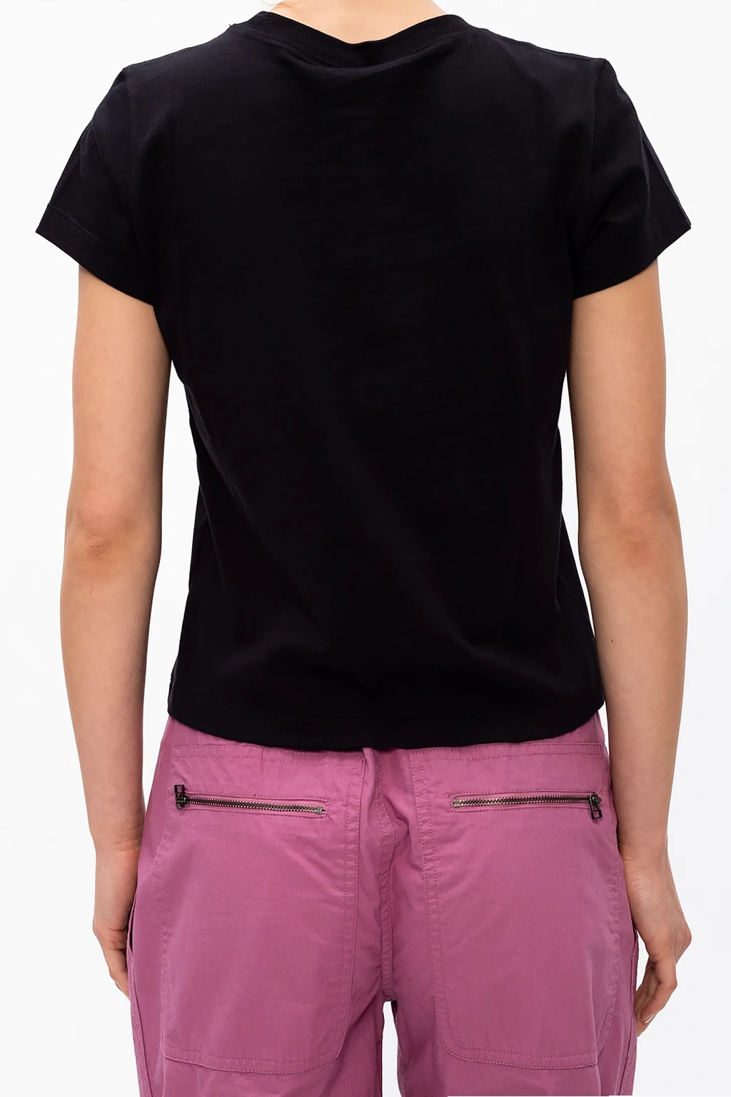 Black T-shirt from T by Alexander Wang. Crafted from cotton, this short sleeve design is decorated with a blue logo print.