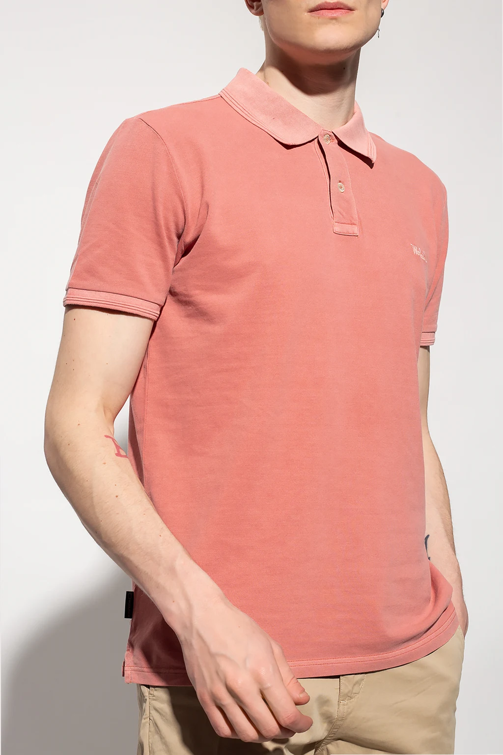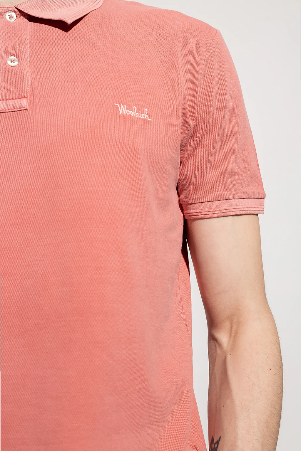 Pinkish beige polo shirt from Woolrich. Made of cotton, this short sleeve design features buttons and a logo embroidery.