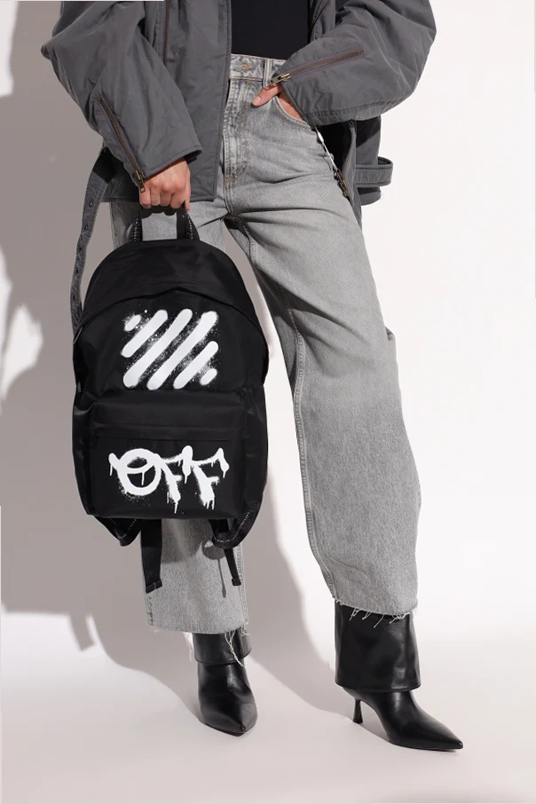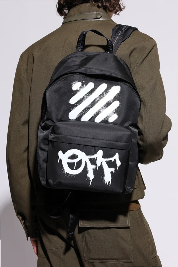 „Diagonal Spray” Rucksack von Off-White ist ein Manifest des raffinierten urbanen Stils, das sich an all jene richtet, die Originalität und Perfektion in jedem Detail suchen. In Schwarz gehalten, besticht er durch einen dynamischen, weiß gesprühten Graffiti-Print sowie den markanten „OFF“-Schriftzug auf der Vorderseite – ein unverkennbares Zeichen dieser prestigeträchtigen Marke.