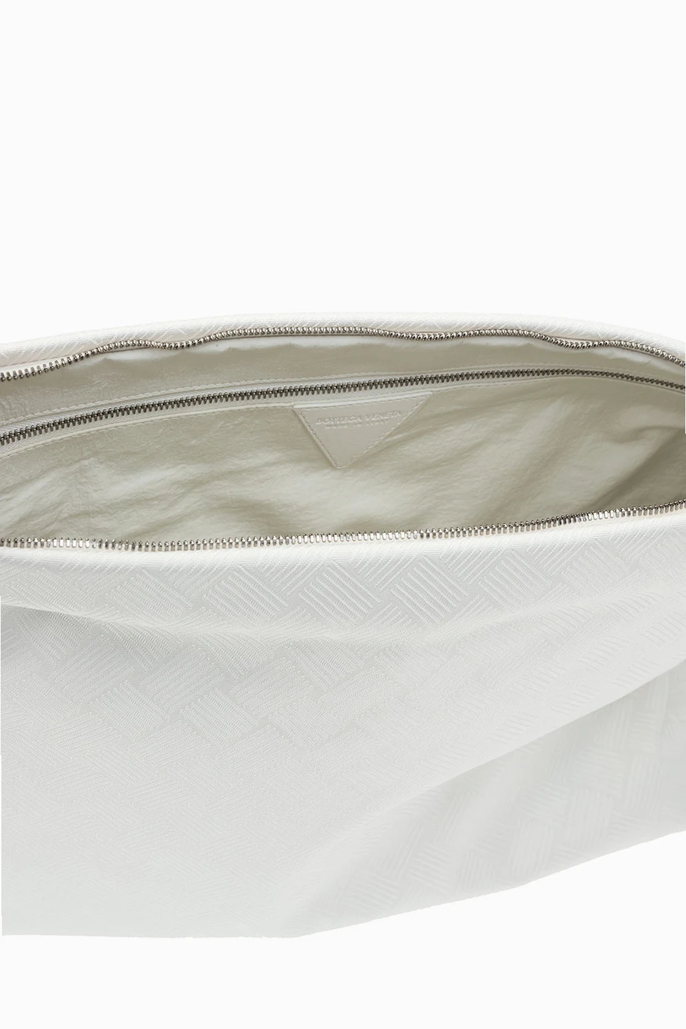White wash bag from Bottega Veneta. Enriched by an embroidered pattern, this item fastens via a zip and features one internal compartment with six slip pockets and one zip pocket.