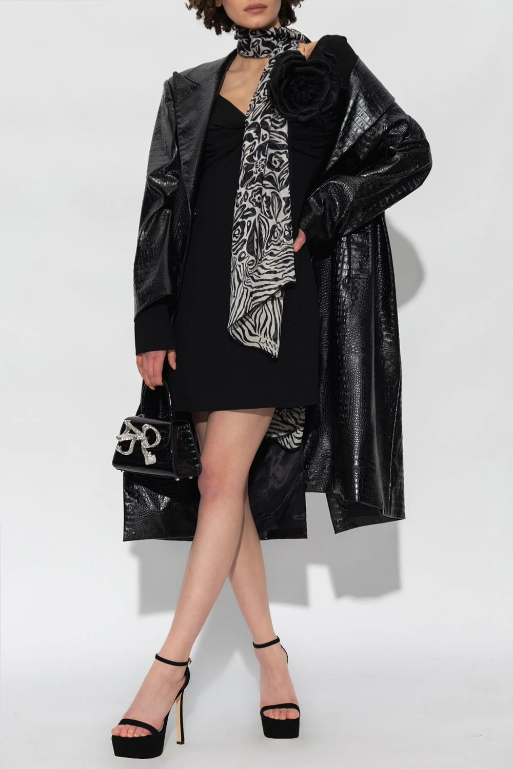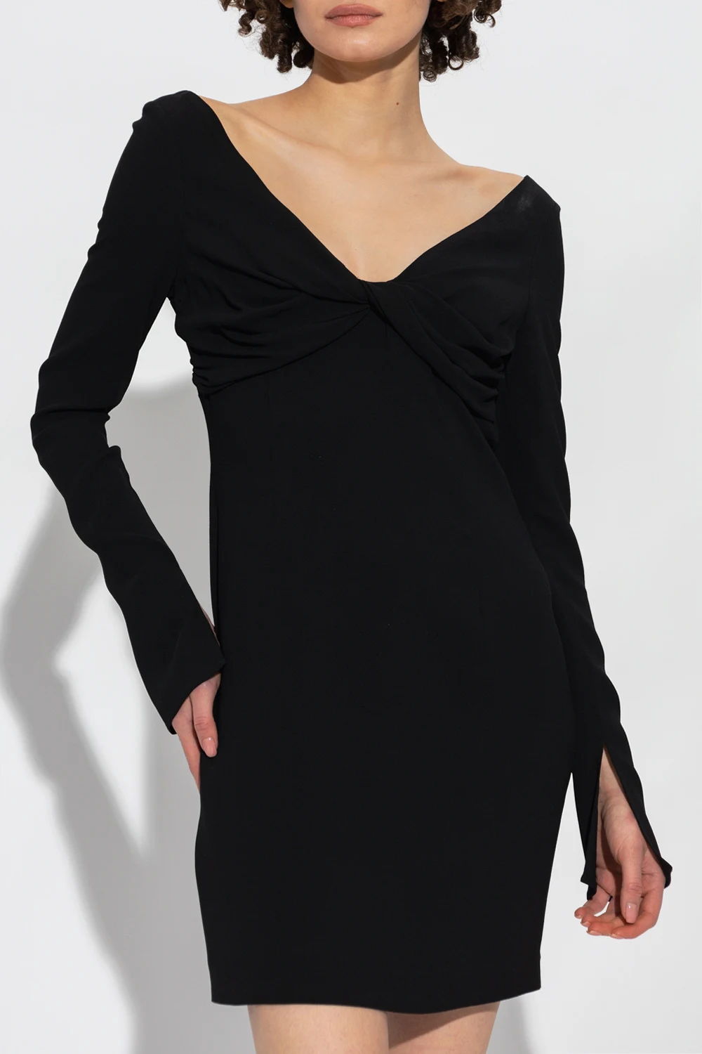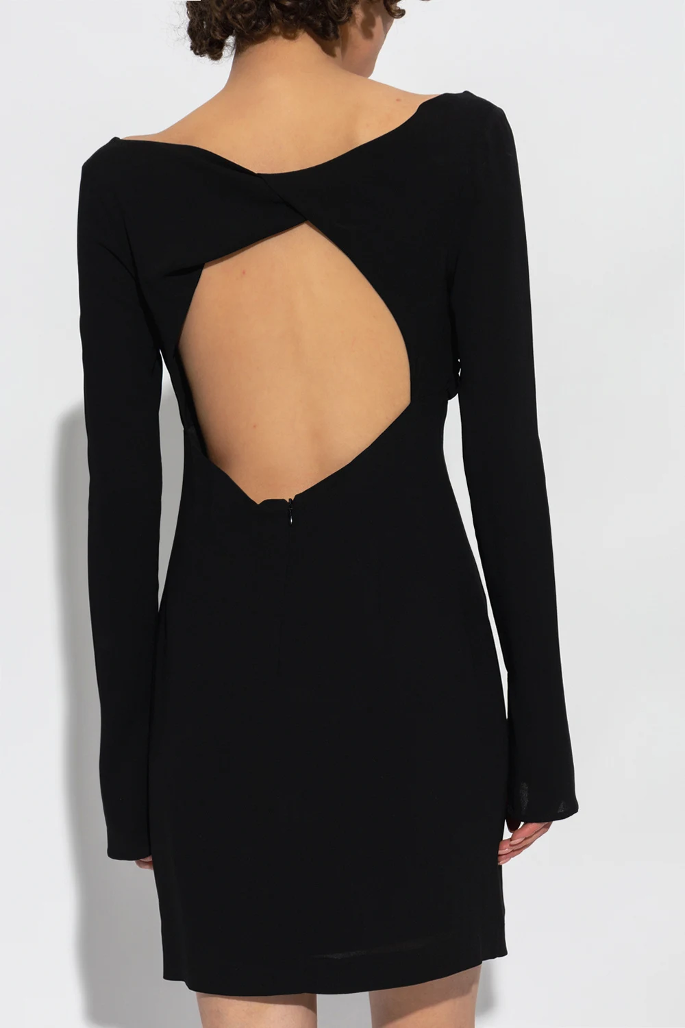 Black dress from Blumarine. Distinguished by cut-out detailing, this style features long sleeves and a back zipper.