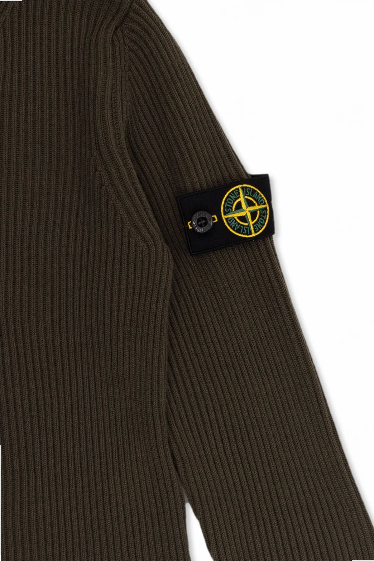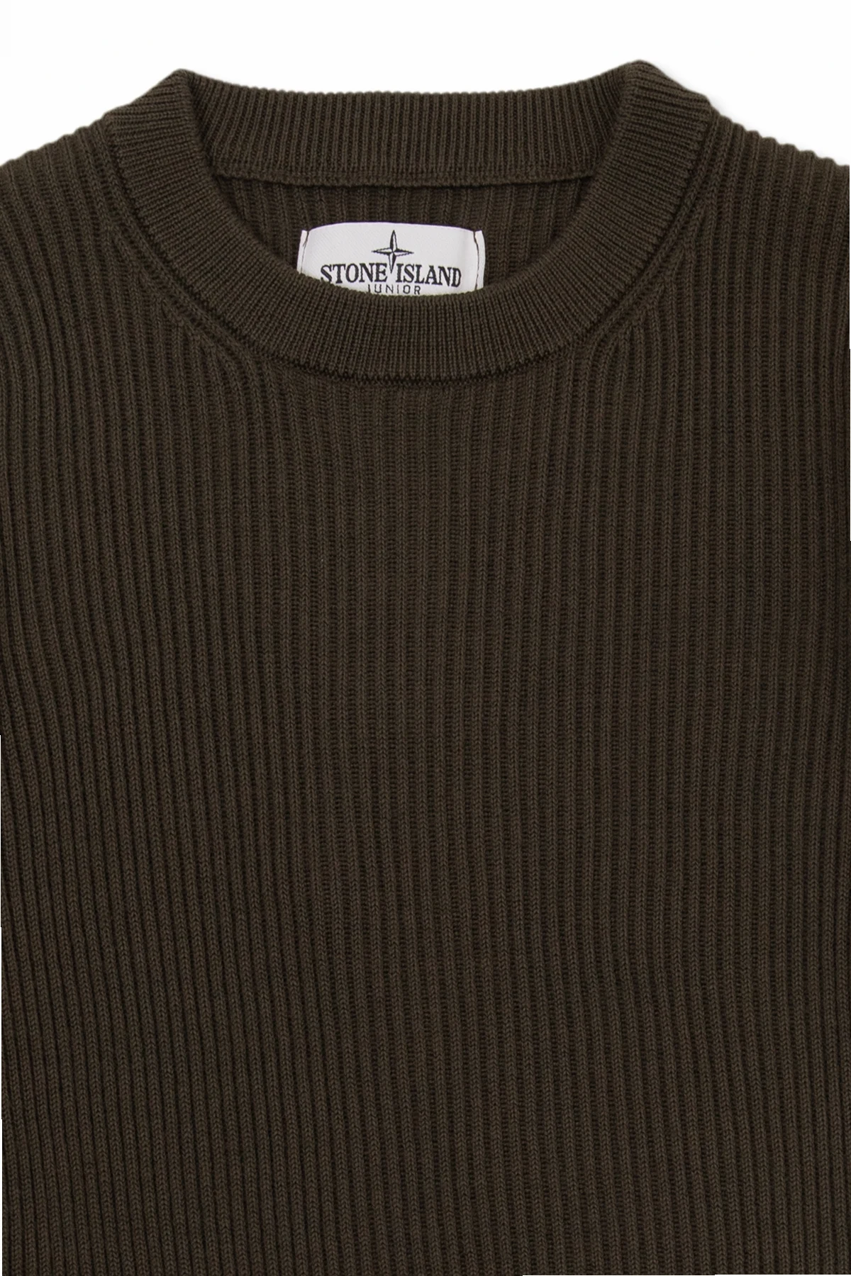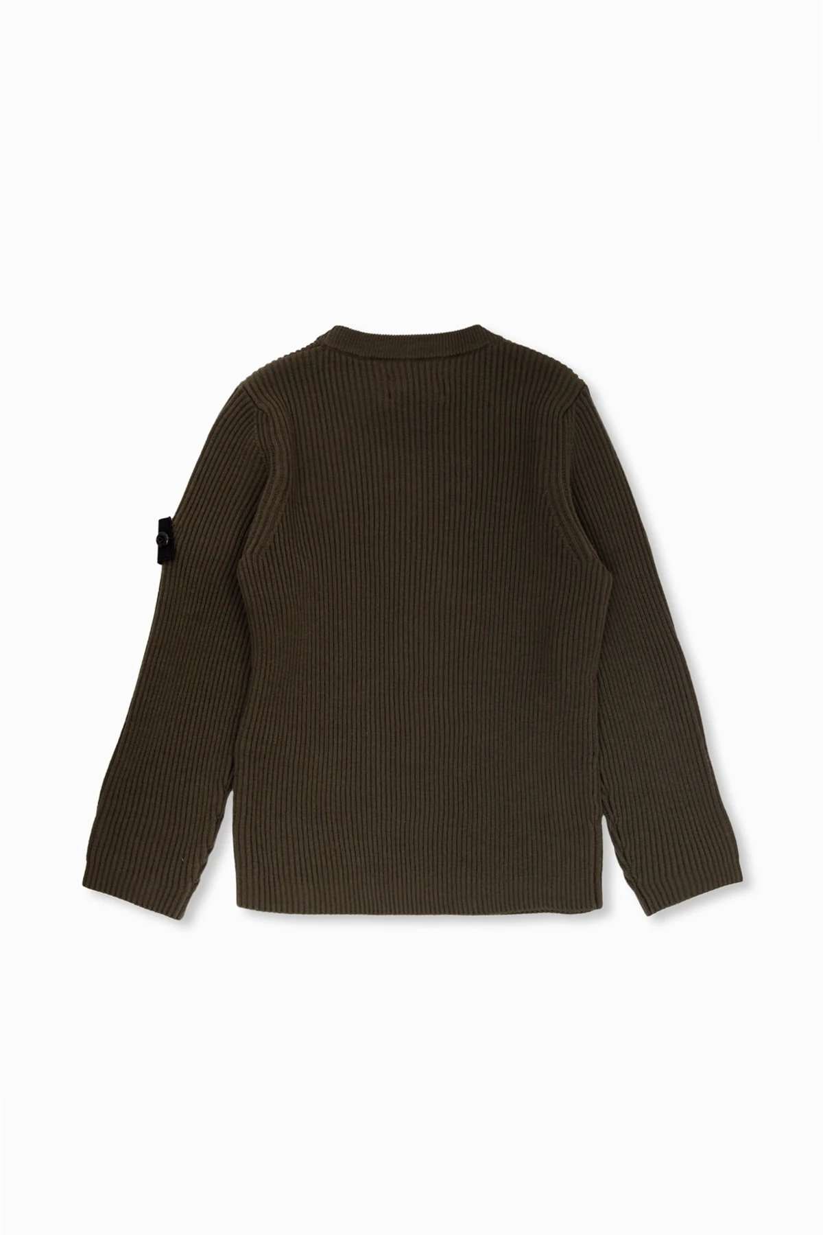 Green ribbed sweater from Stone Island Kids. Made of wool, this design features a black, yellow and green logo patch and a ribbed crew neck.