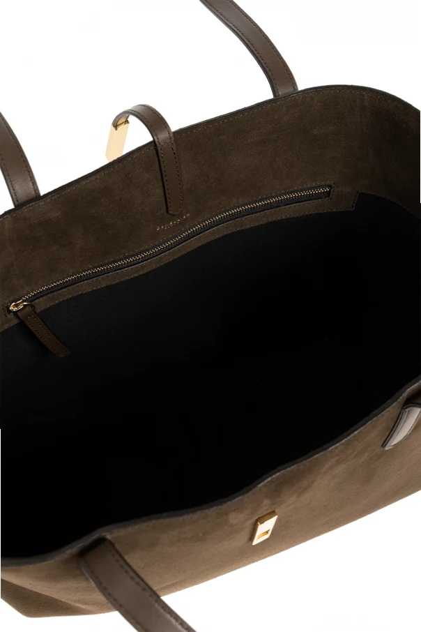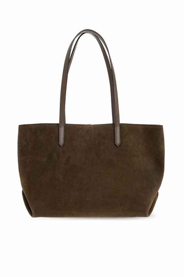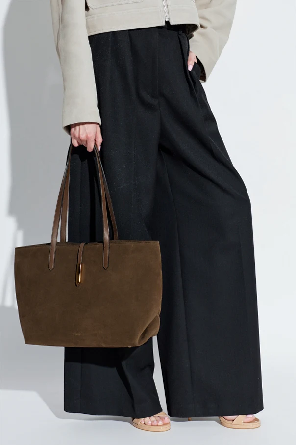 Tokyo Shopper Schultertasche von DeMellier ist eine Hommage an zeitlose Eleganz und Funktionalität. Mit meisterhafter Präzision aus braunem Veloursleder gefertigt, besticht sie durch ihre Weichheit und das edle, matte Finish. Der Griff aus Leder in einem tiefen Braunton unterstreicht die harmonische Farbkomposition auf subtile Weise. Dezente, goldene Beschläge und ein dekoratives Schließelement zieren das Gesamtbild, während die minimalistische, glatte Oberfläche der Tasche ihren raffinierten Charakter hervorhebt. Die geräumige, rechteckige Form garantiert höchsten Tragekomfort im Alltag und das feine goldene Designerlogo im unteren Frontbereich macht sie zu einem außergewöhnlichen Accessoire für Liebhaberinnen von Luxus. Das Innere ist mit einem zarten Baumwollfutter ausgestattet, das sowohl ästhetisch als auch praktisch höchste Ansprüche erfüllt.