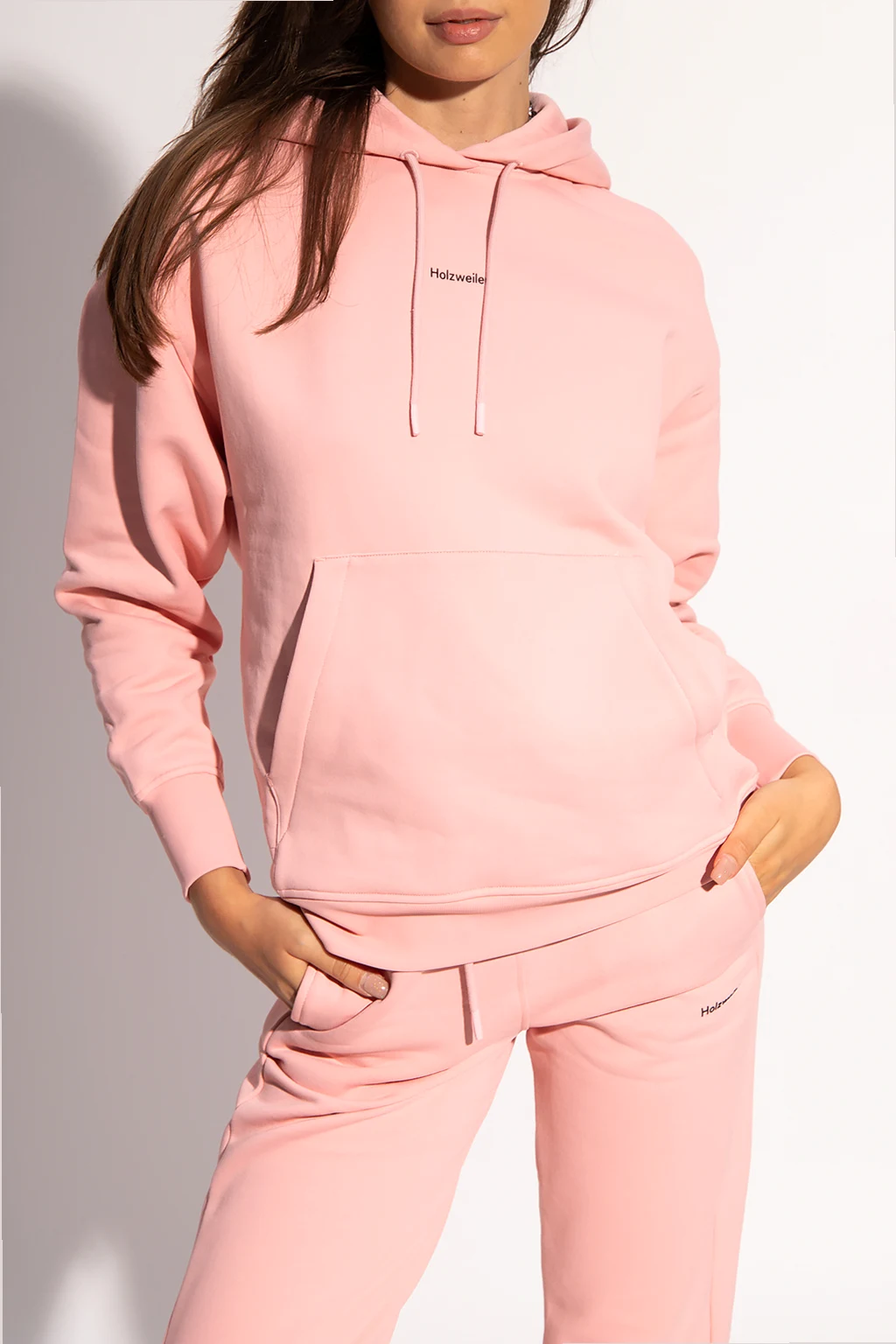 Pink hoodie from Holzweiler. Decorated with a raised logo in black, this garment features a drawstring hood, slip pocket and ribbed trims at the hem and cuffs.