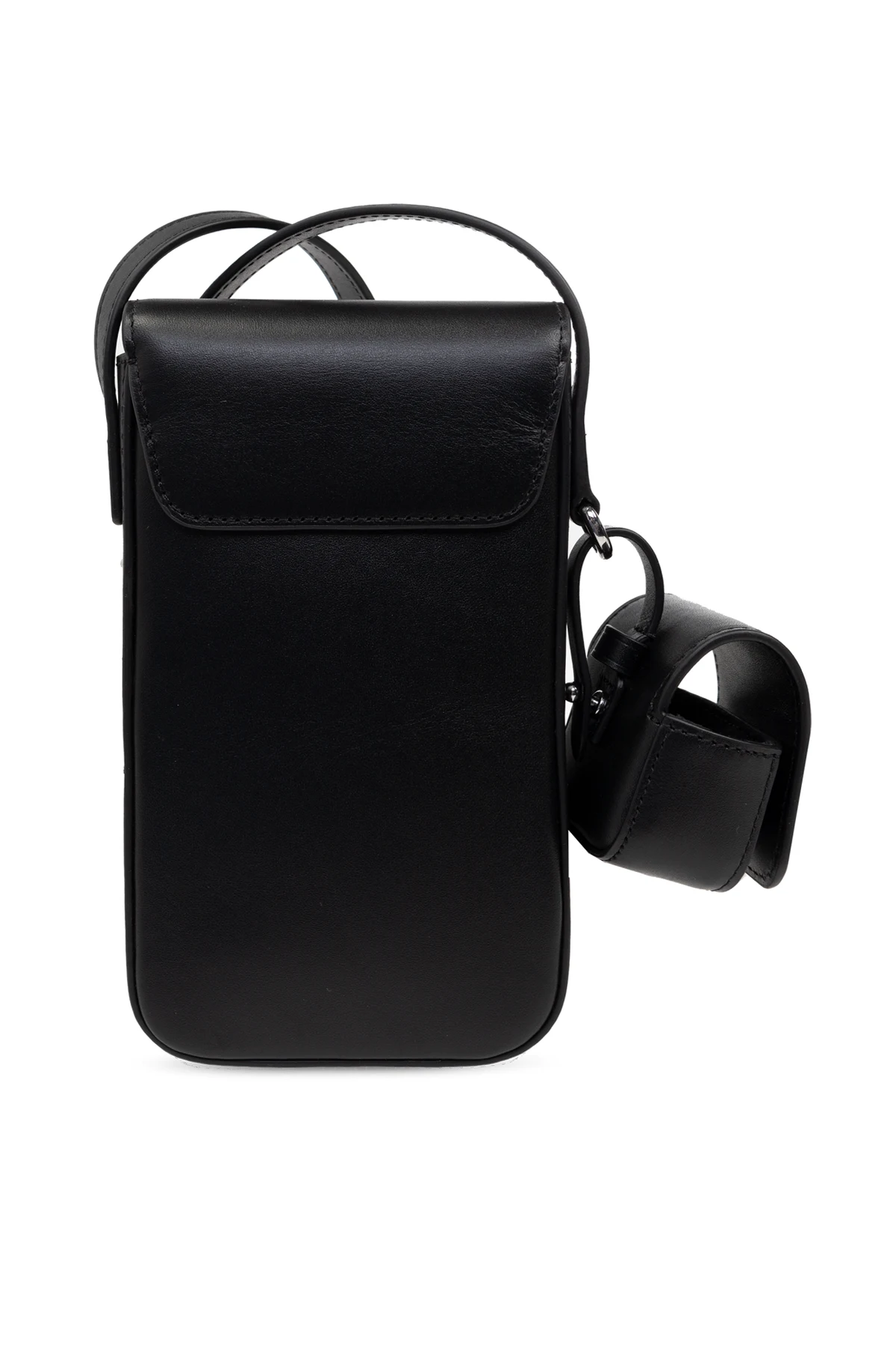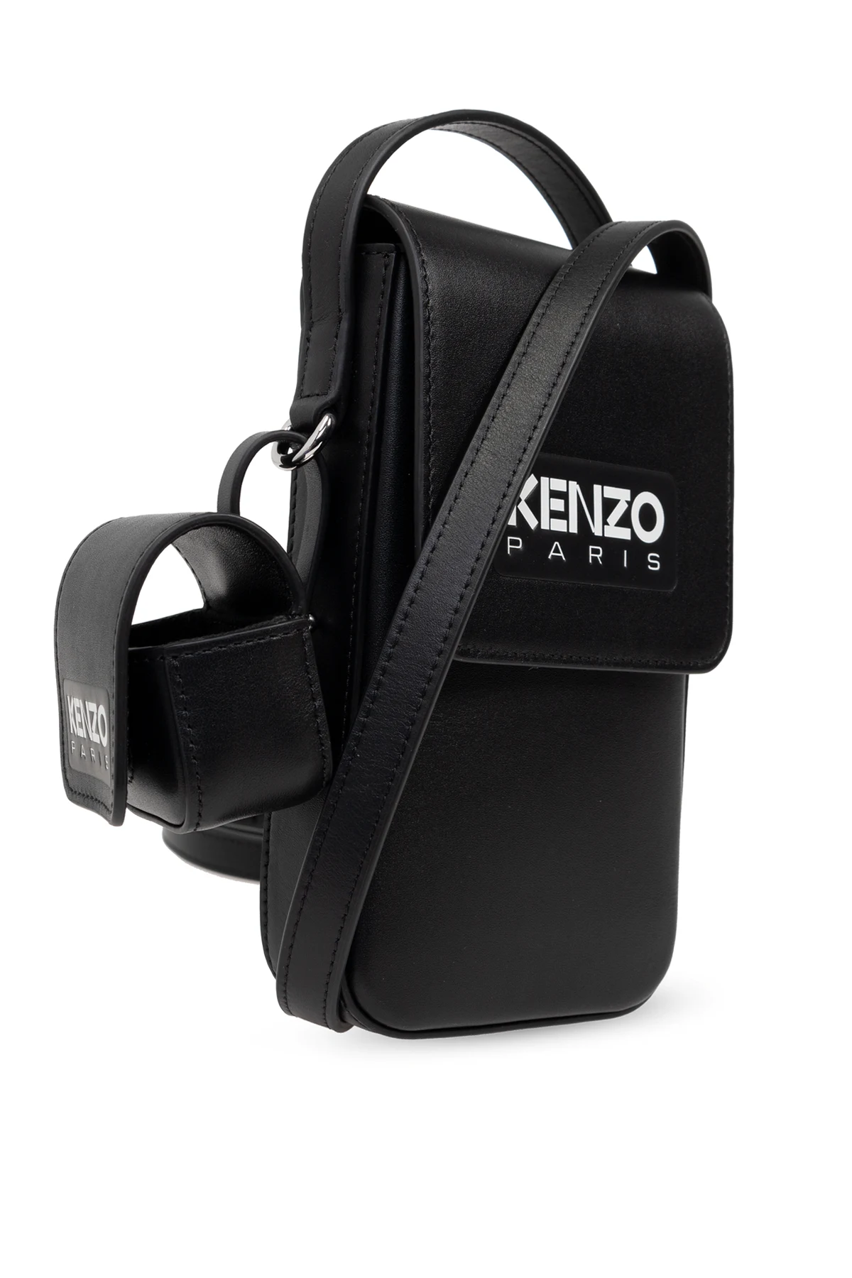 Wir präsentieren Ihnen eine exklusive Telefontasche mit Riemen vom renommierten Designer Kenzo , die die Quintessenz minimalistischen Designs und Funktionalität darstellt. Das von einem tiefen Schwarz dominierte Etui bezaubert mit seiner rechteckigen Form mit sanft abgerundeten Ecken und einem flachen Profil, was ihm eine elegante und moderne Ästhetik verleiht.