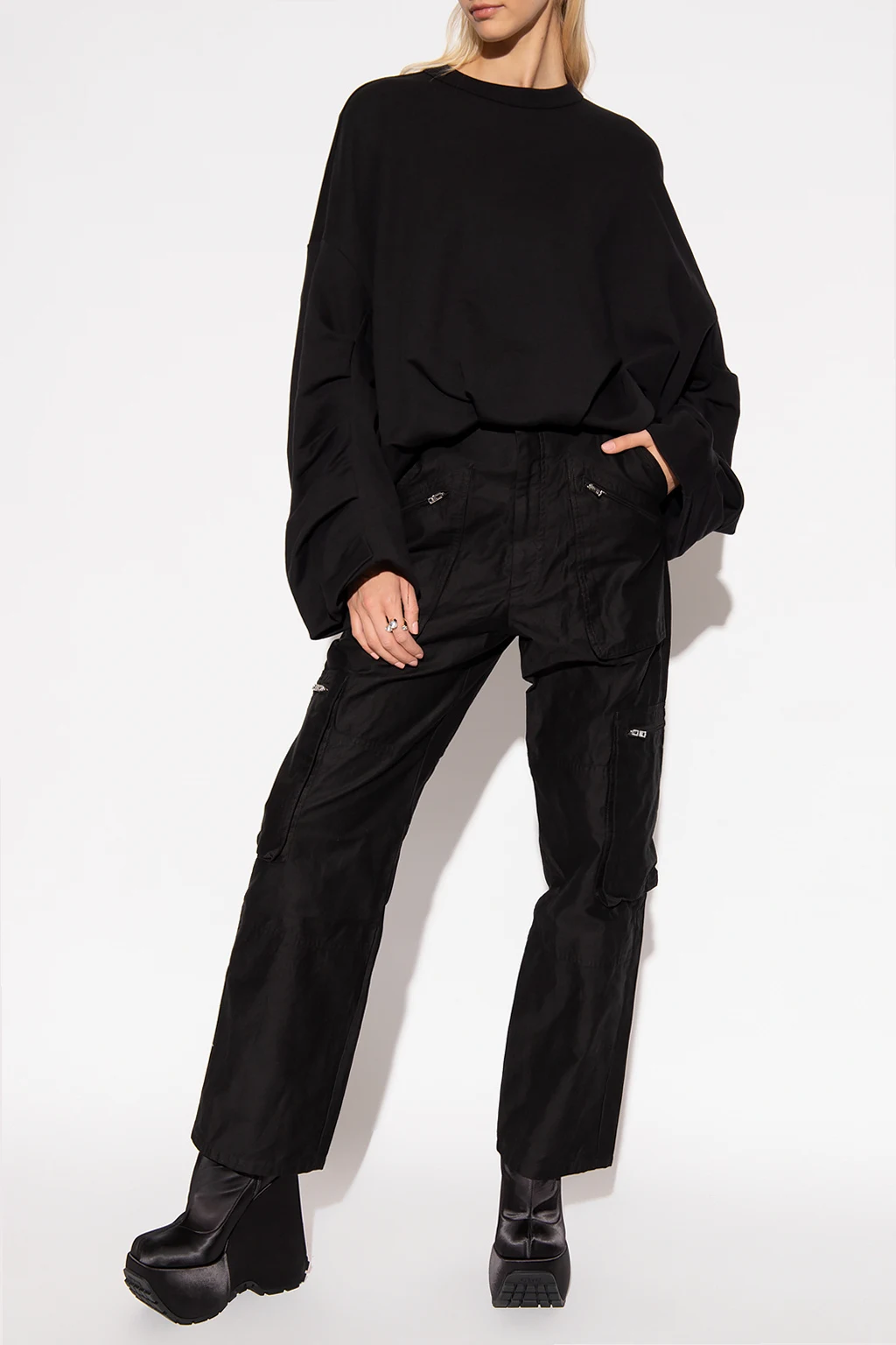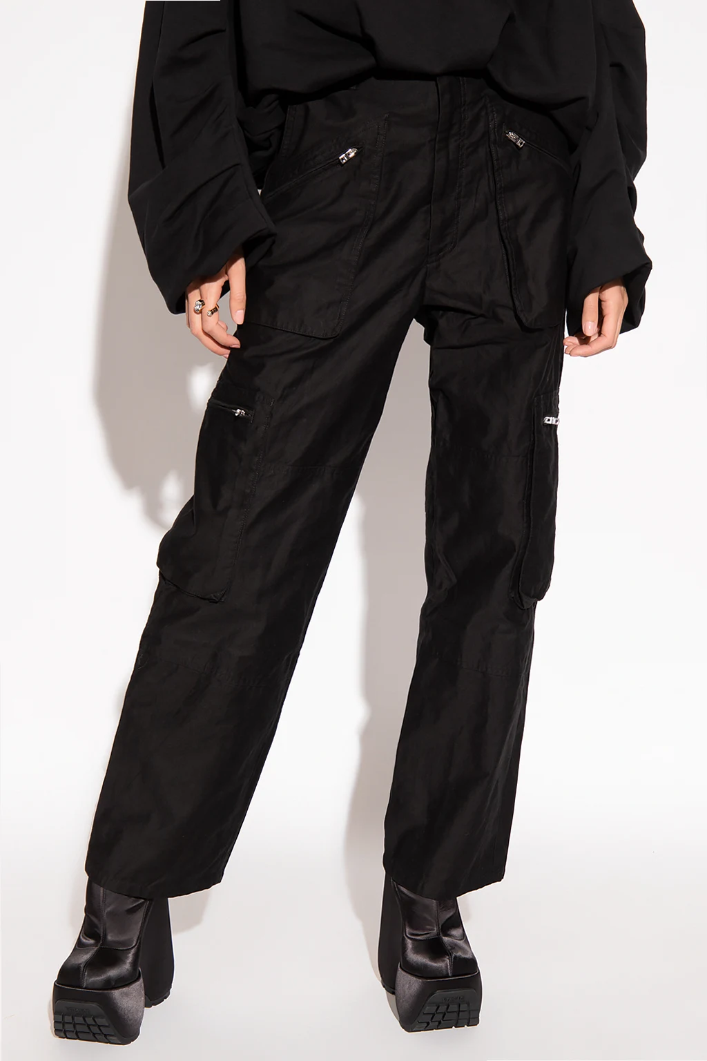 Black trousers from Amiri. Made of cotton, this wide leg pair is complete with a zip and button closure and eight pockets.