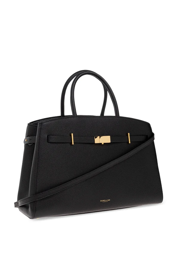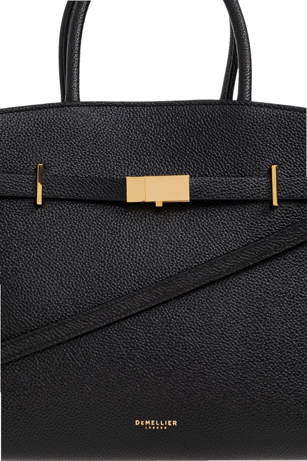 Metallische, goldene Details – darunter der Verschluss sowie die Elemente des Riemens – faszinieren und verleihen einen Hauch von Glamour. Das dezent geprägte, goldene Logo „DEMELLIER LONDON“ ist ein diskretes Zeichen für Echtheit und das Können des Designers. Zwei kurze Griffe und ein abnehmbarer, verstellbarer Schulterriemen bieten verschiedene Tragemöglichkeiten.