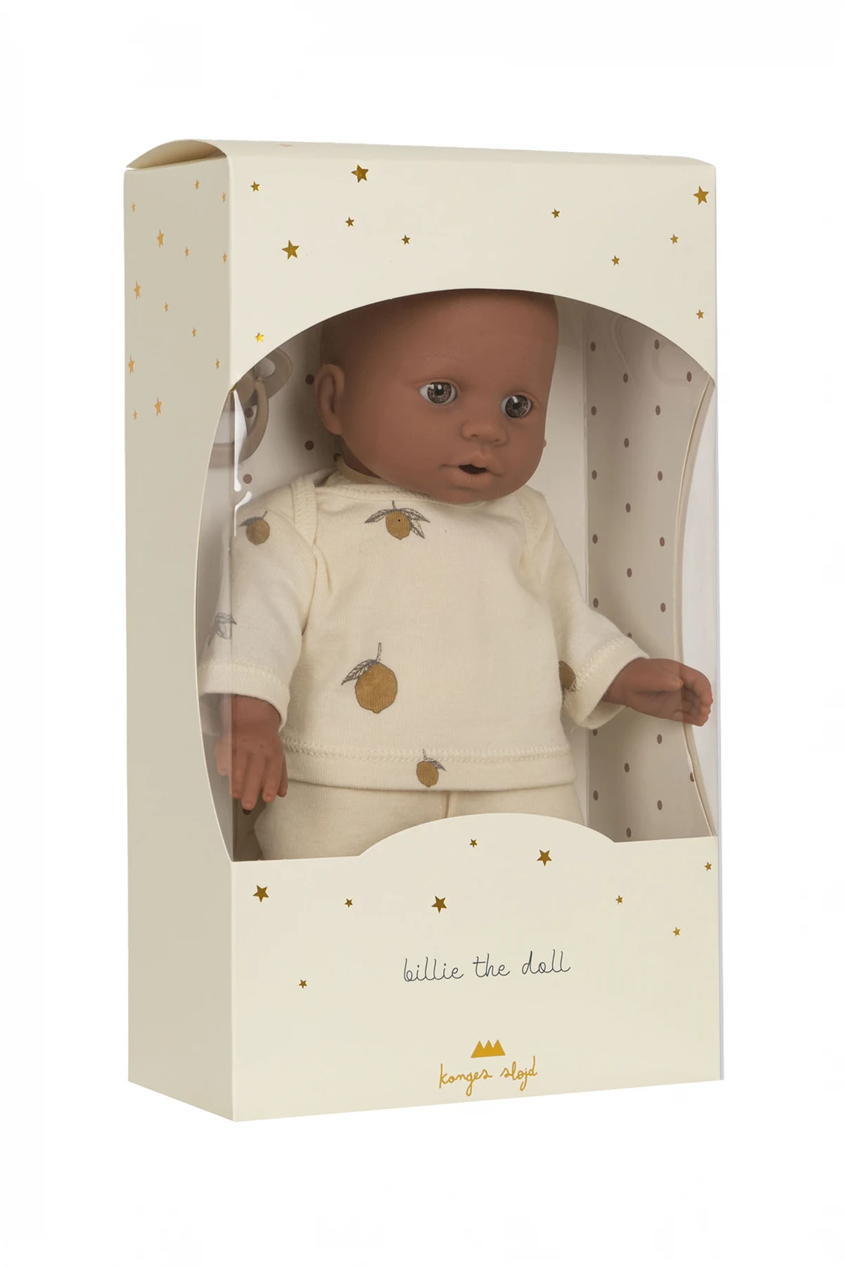 ‘Billie’ doll from Konges Slojd. Made in vinyl and organic cotton with recycled polyester filling.