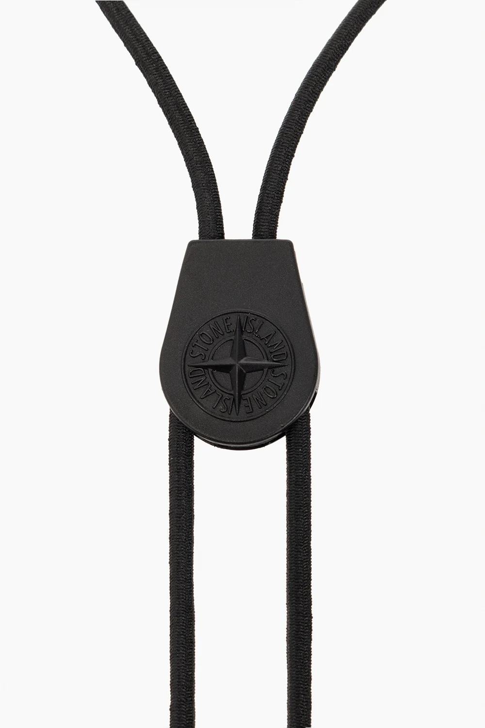 Black lanyard with a logo and carabiner hook from Stone Island.