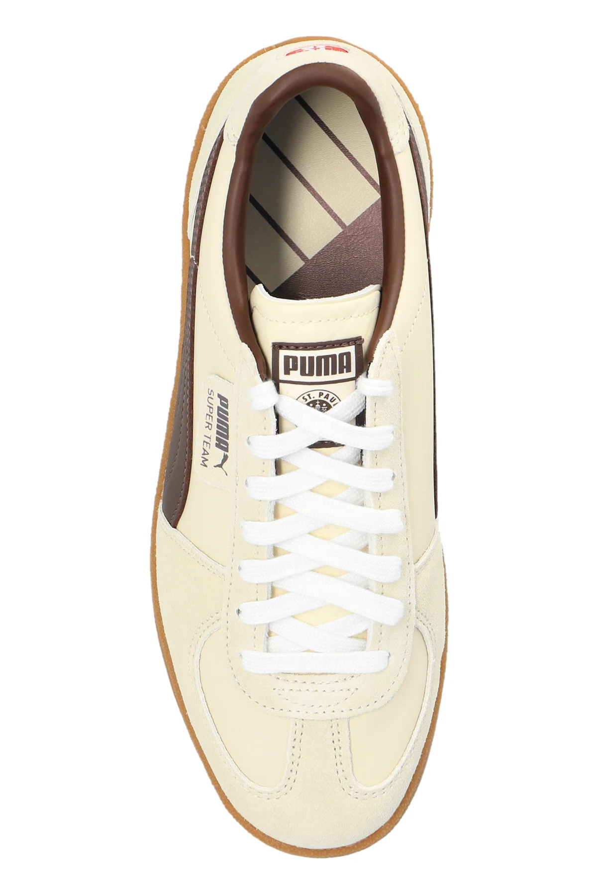 Wir präsentieren Puma x FC St. Pauli Super Team – elegante SNEAKERS aus einer exklusiven Kollektion, die Klassik mit modernem Design verbinden. Ihr niedriges Design sowie die dominierende cremefarbene Farbe mit braunen Streifen an den Seiten verleihen ihnen einen einzigartigen Charakter. Aus hochwertigem Leder gefertigt, zeichnen sich diese Schuhe nicht nur durch Ästhetik, sondern auch durch Langlebigkeit aus.