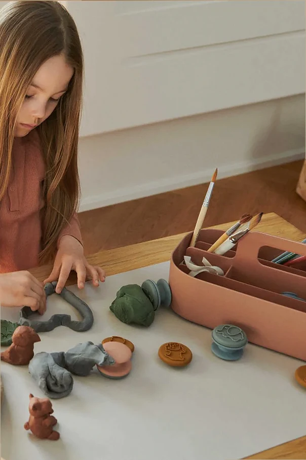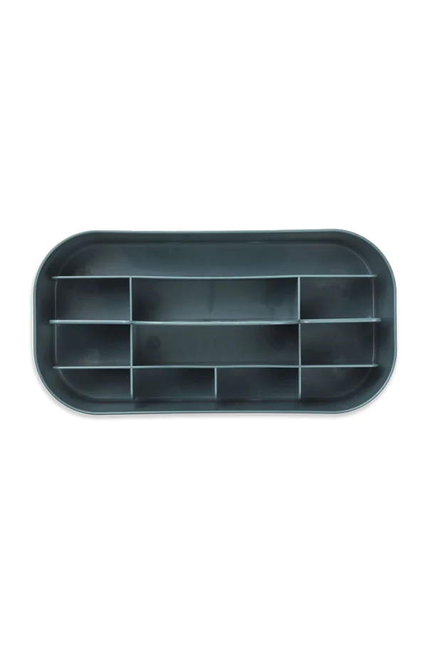 Hergestellt aus strapazierfähigem Kunststoff, ist der Behälter leicht zu reinigen und widerstandsfähig gegen Beschädigungen. Die marineblaue Farbe bringt einen ruhigen, universellen Akzent in jeden Raum. Das Innere des Behälters verbirgt zahlreiche Fächer, die eine perfekte Organisation von Kinderzubehör oder Kunstmaterialien ermöglichen.