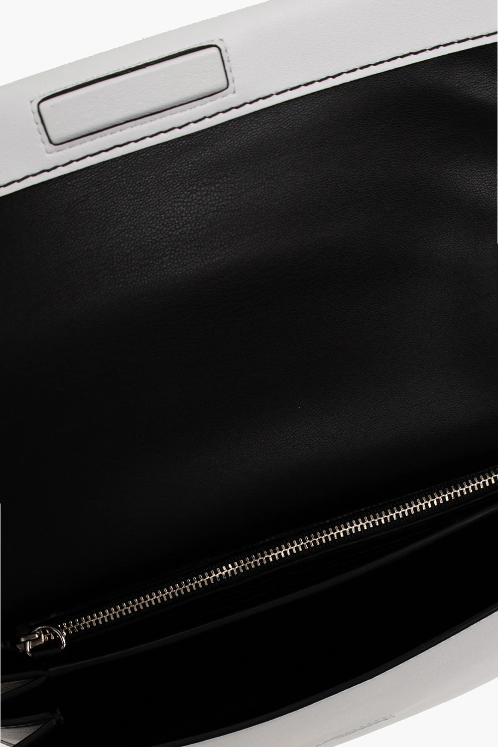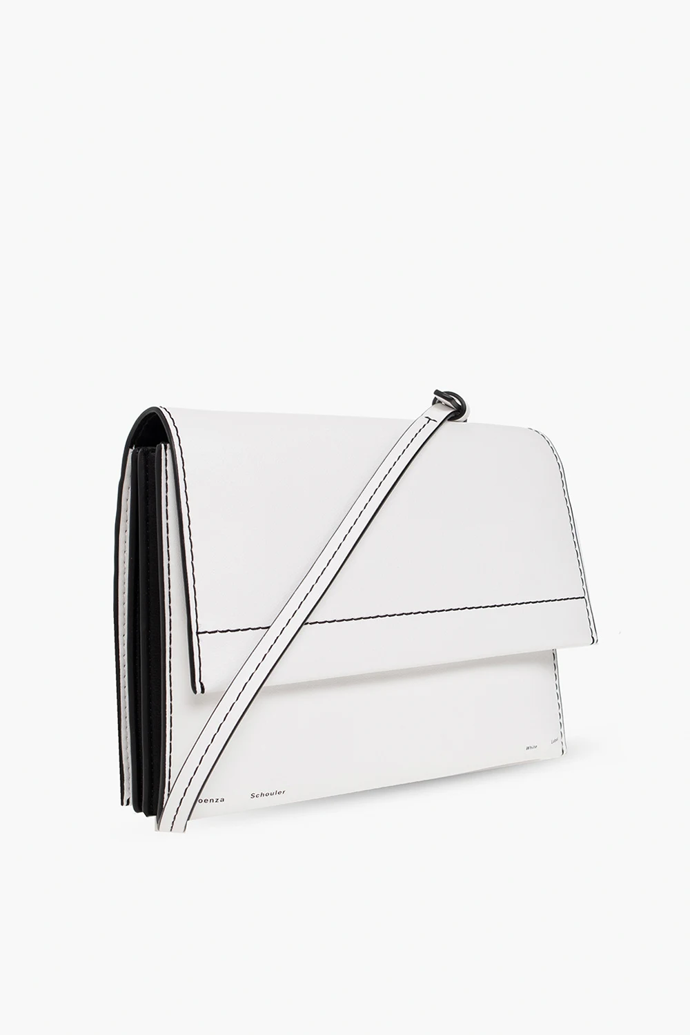 White and black ‘Accordion’ shoulder bag from Proenza Schouler White Label. Made of calf leather, this model features a flap with a magnetic snap, black logo print and stitching, back pocket, detachable shoulder strap, silver-tone metal hardware and three separate internal compartments with one zip pocket and eight card slots.