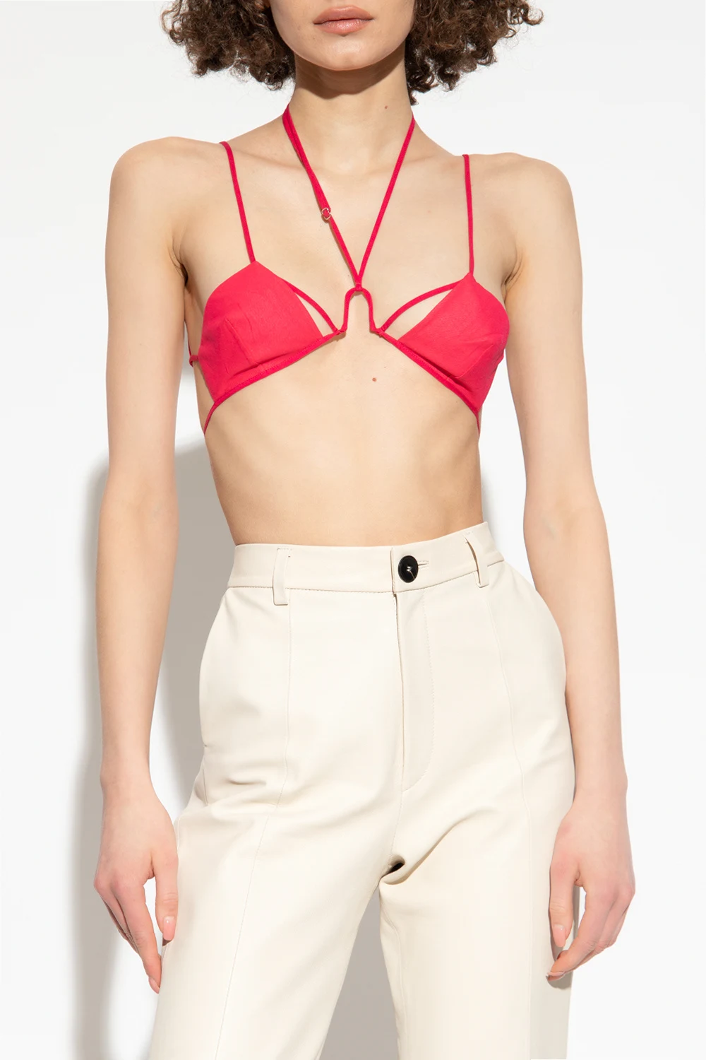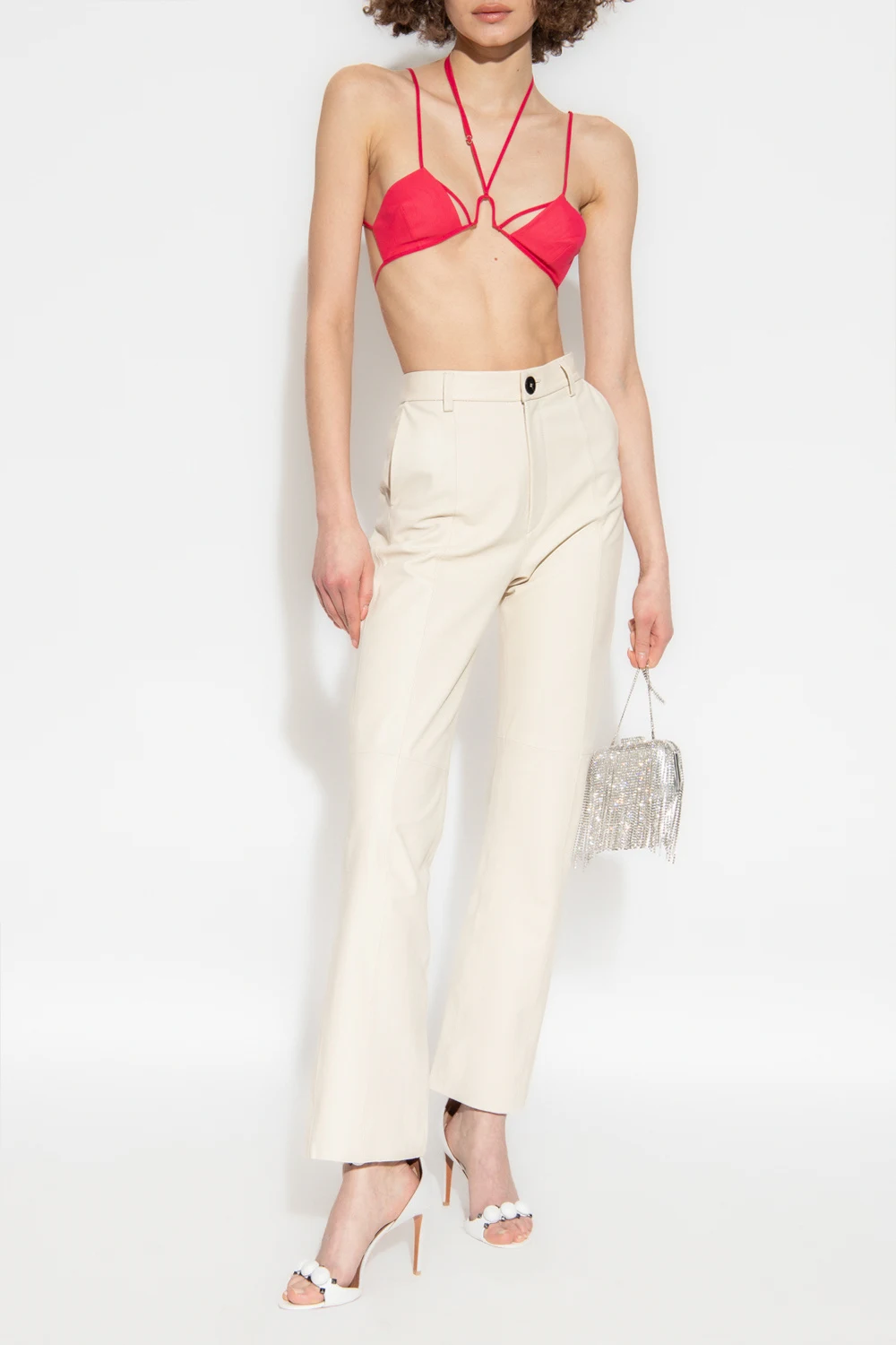 Pink top from Nensi Dojaka. Fastened with hooks, this design features adjustable straps and decorative cut-outs.
