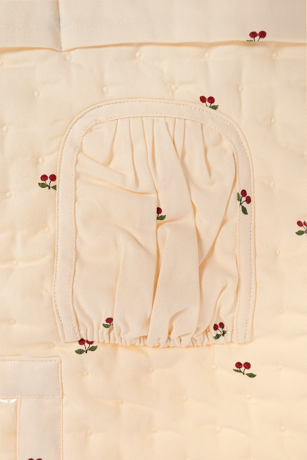 Entworfen mit einem Auge für Eleganz und Funktionalität, ist der Auto-Organizer von Konges Sløjd die Quintessenz von Stil und Praktikabilität. Gefertigt aus einer Kombination aus organischer Baumwolle und recyceltem Polyester, präsentiert sich dieses einzigartige Autozubehör in einem subtilen, cremigen Farbton, der als Hintergrund für zarte, verstreute Stickereien dient, die rote Blumen mit grünen Blättern darstellen.
