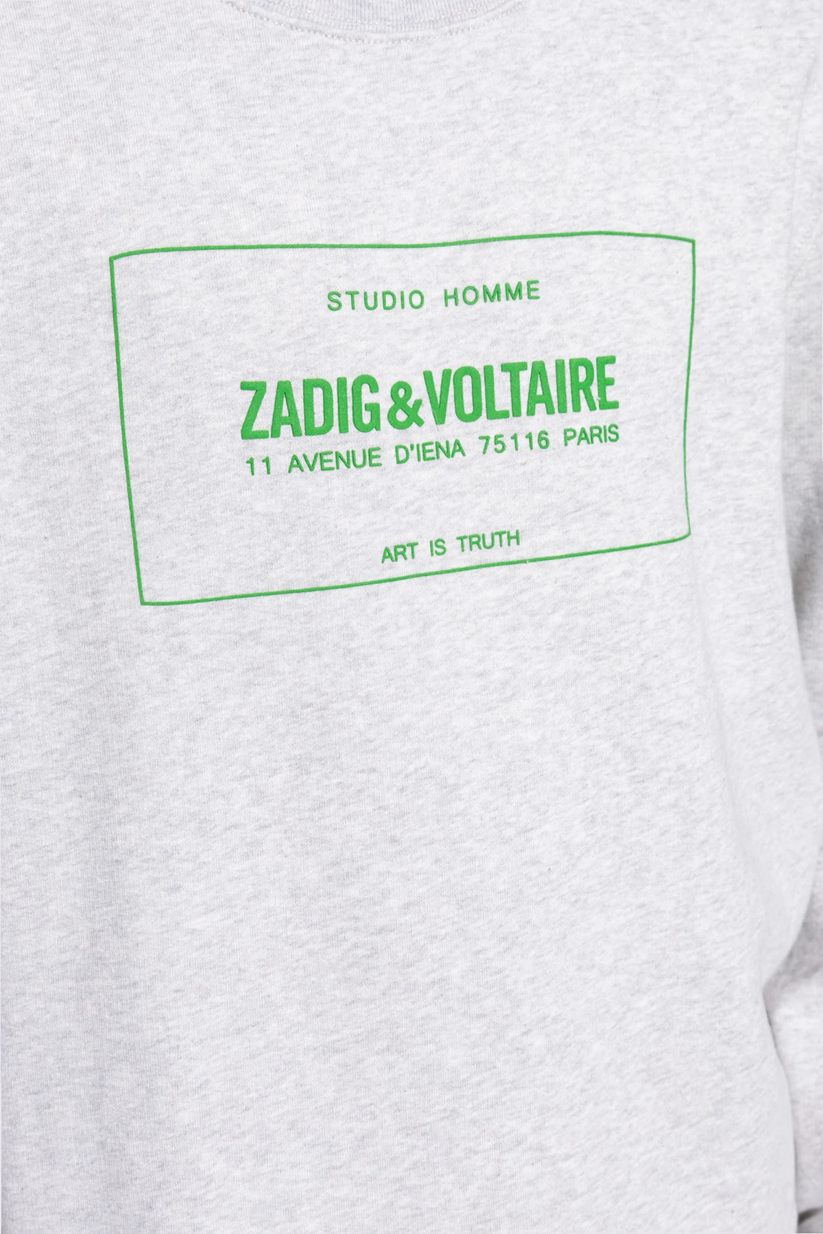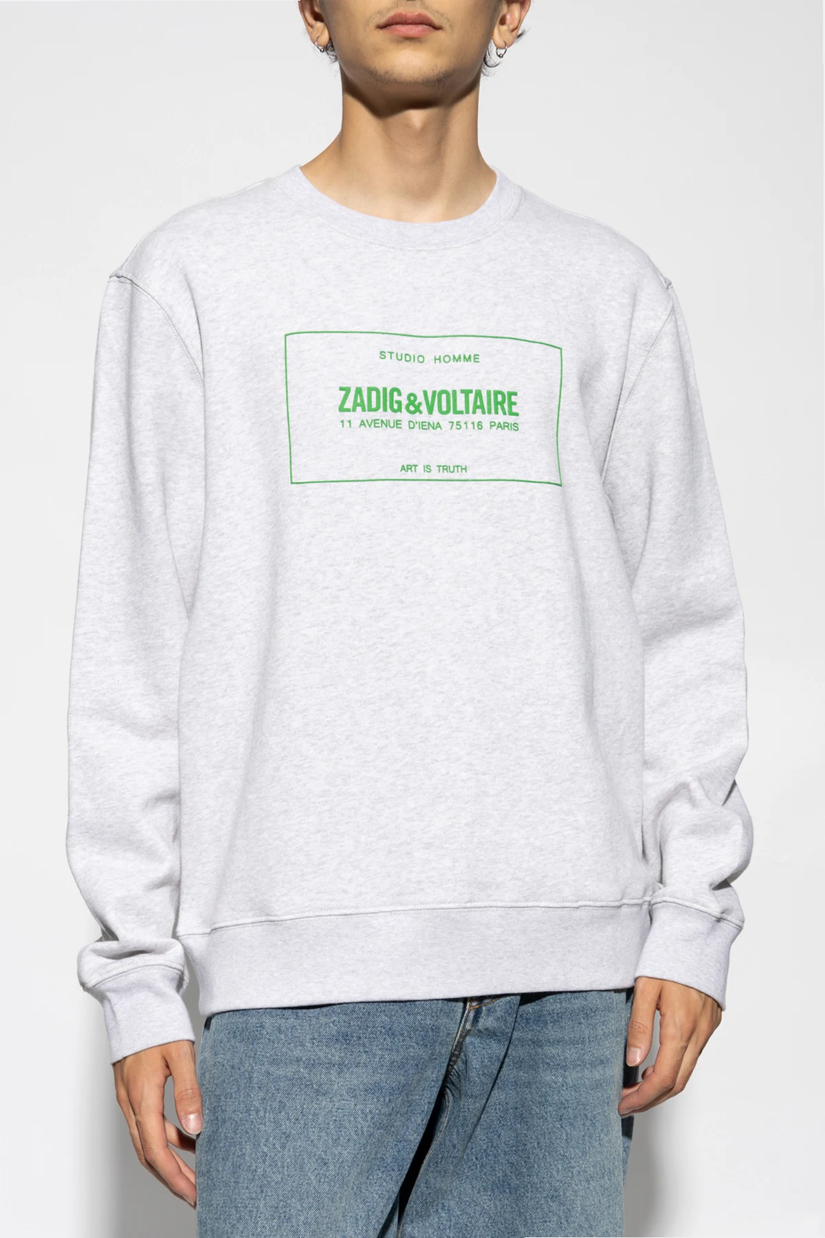 Hergestellt aus hochwertiger Baumwolle , bietet es unvergleichlichen Tragekomfort und Langlebigkeit. Die hellgraue Farbe verleiht ihm subtile Eleganz, während der grüne Druck auf der Vorderseite des Sweatshirts, der den Text "STUDIO HOMME ZADIG & VOLTAIRE 11 AVENUE D'IENA 75116 PARIS ART IS TRUTH" enthält, einen einzigartigen Charakter hinzufügt.