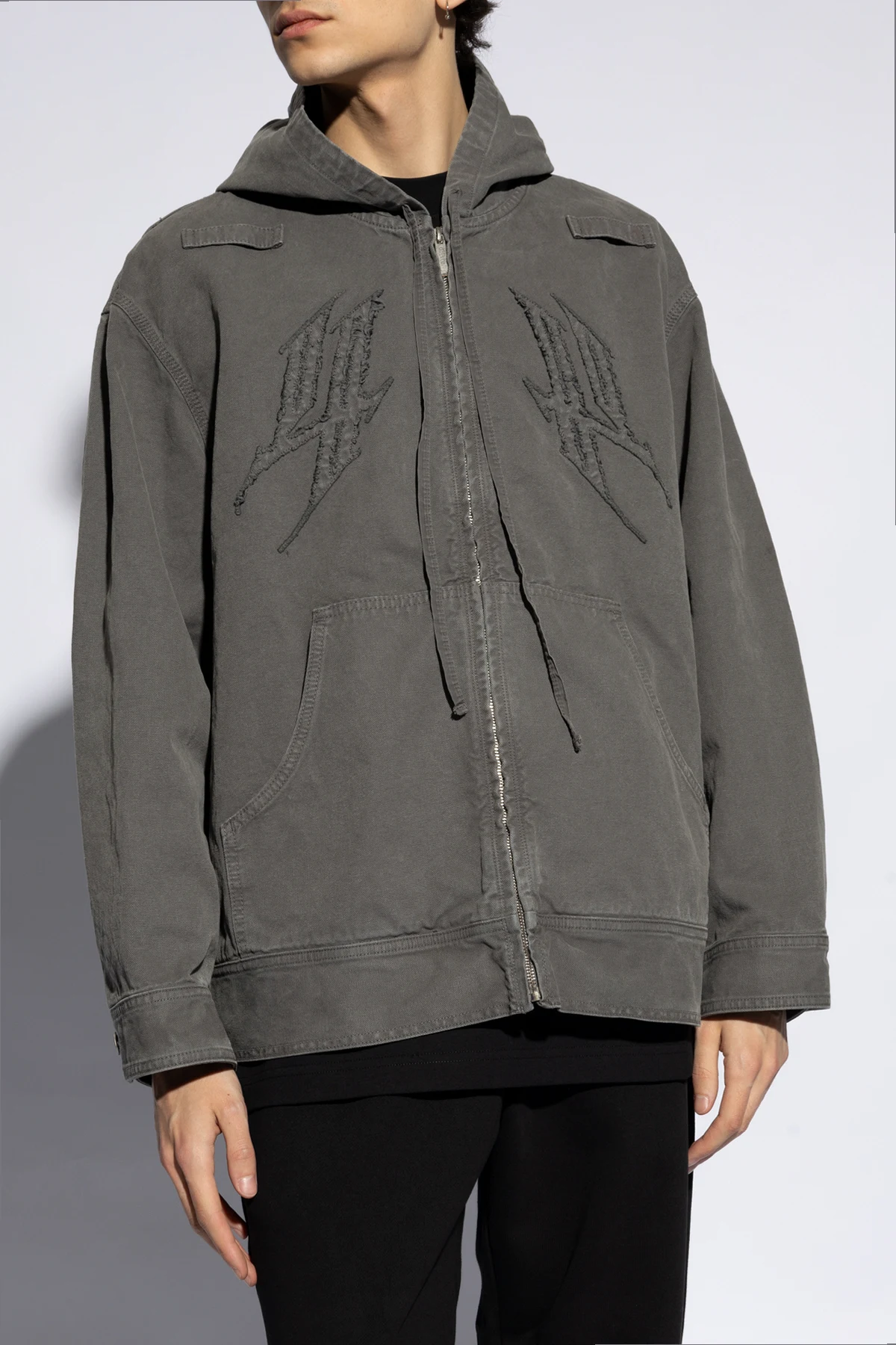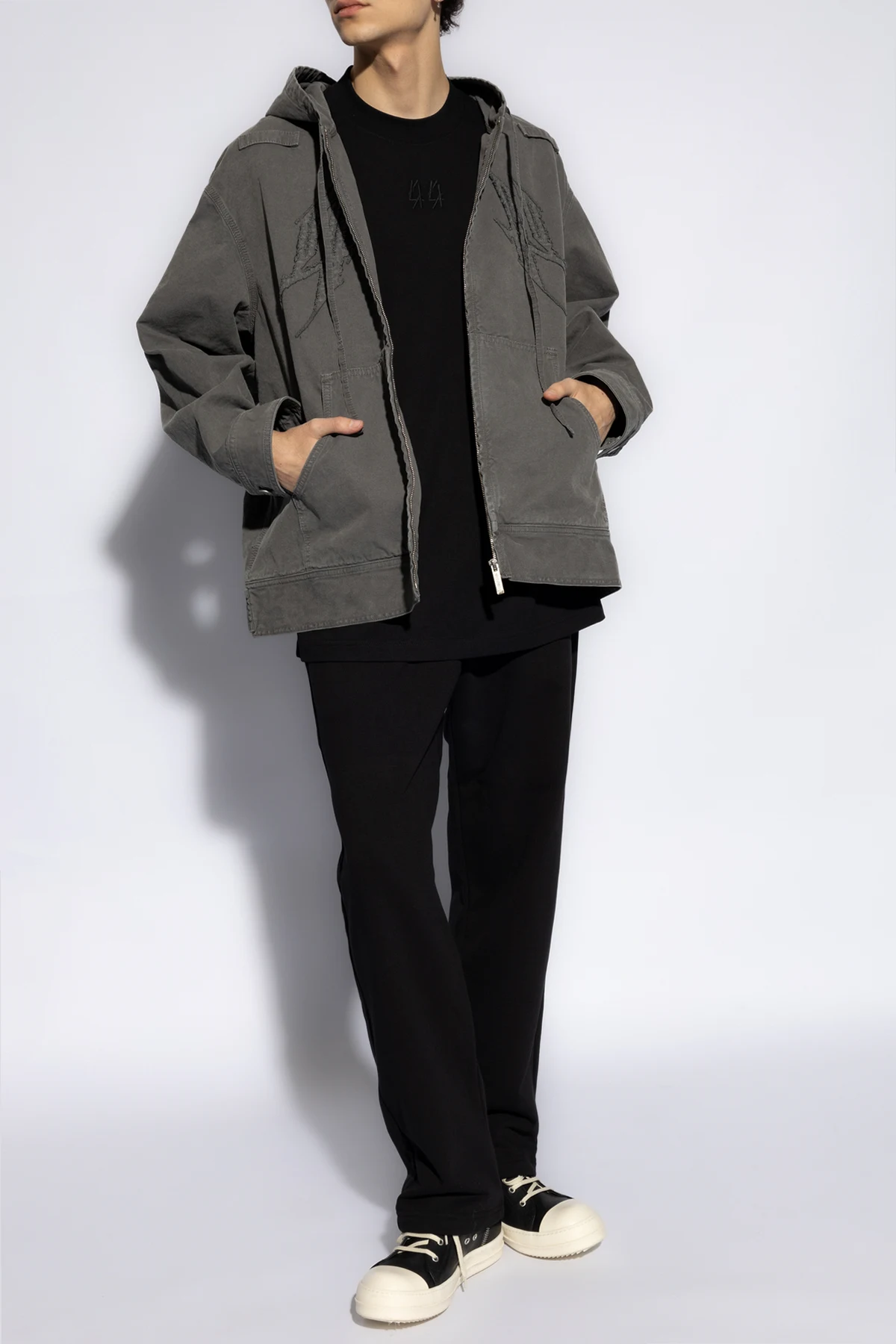 Grey jacket from 44 Label Group. Made of cotton, this design features a zip fastening, drawstring hood, logo with a vintage effect, two front pockets and long sleeves with buttoned cuffs.
