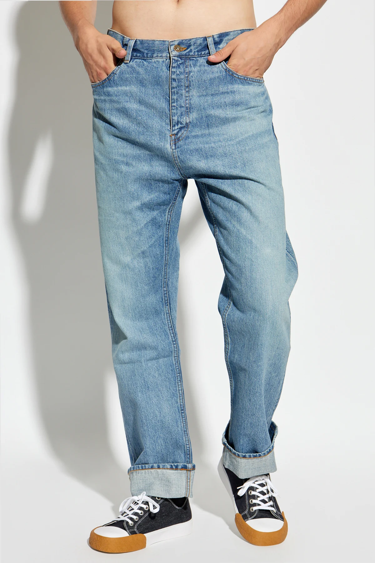 Wir präsentieren Jeans mit geradem Bein aus der exklusiven Kollektion von Loewe. Diese klassischen Jeans, die zu 100% aus Baumwolle gefertigt sind, begeistern durch ihre Schlichtheit und Eleganz. Die hellblaue Farbe mit leichtem Wascheffekt verleiht ihnen einen Vintage-Stil, der perfekt zum lässigen Charakter passt.