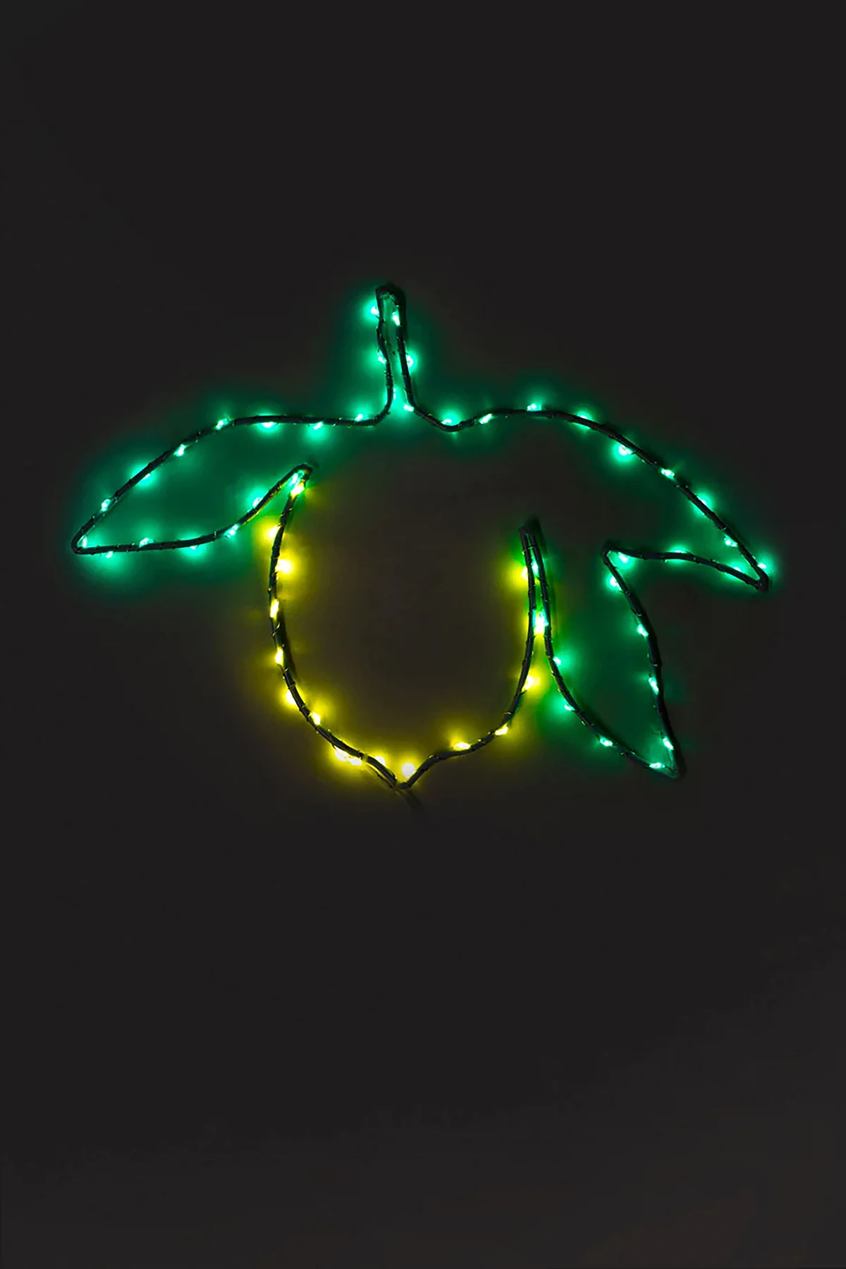 Hergestellt aus leichtem Aluminiumdraht, der mit weißem Isoliermaterial umwickelt ist, nimmt die Lampe die Form einer Zitrone mit drei Blättern an. Subtile LEDs, die entlang der Kontur verteilt sind, strahlen ein sanftes grün-gelbes Licht aus und betonen ihre Form. Komplettiert wird das Ganze durch ein weißes Stromkabel mit einem Schalter für komfortable Bedienung.