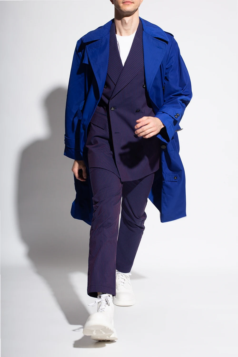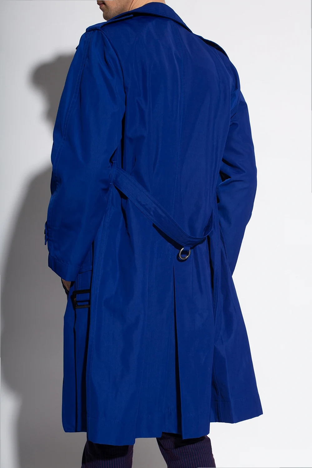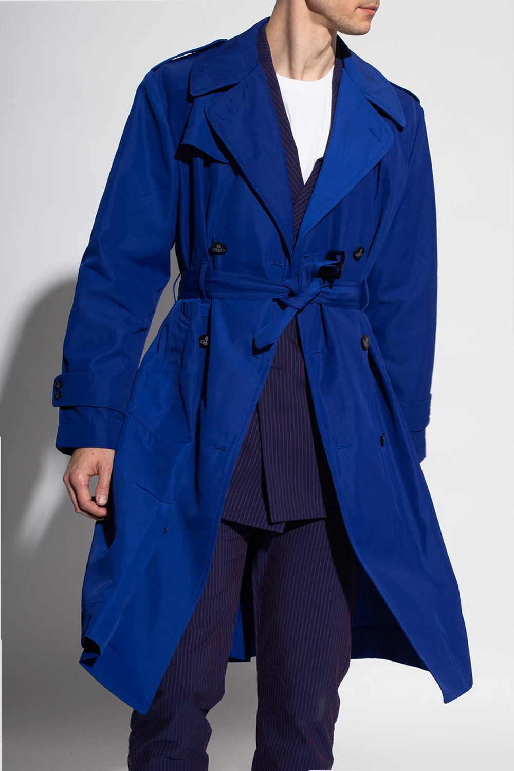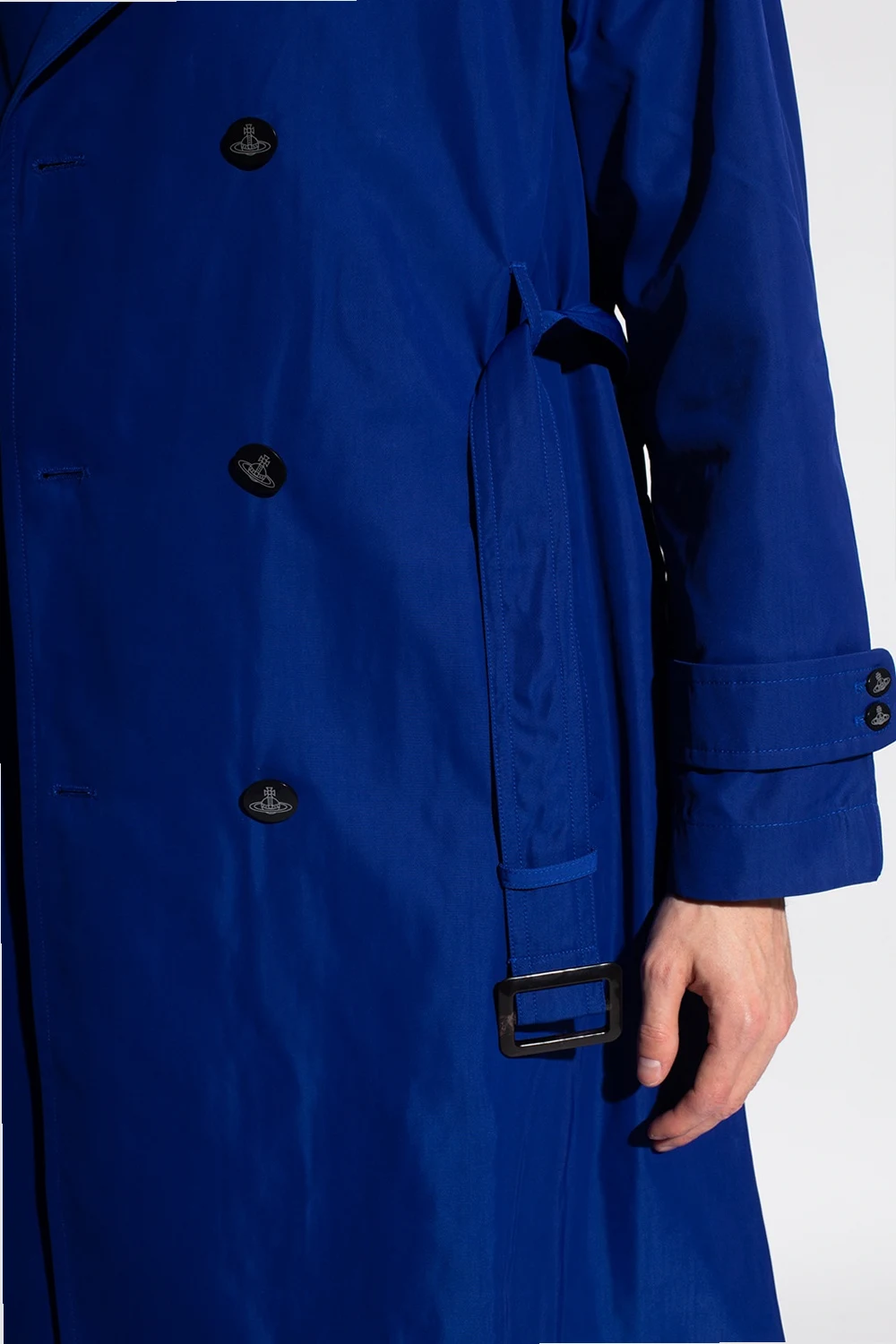 Blue trench coat from Vivienne Westwood. Boasting a double-breasted silhouette, this item features button fastenings, a buckle belt at the waist, epaulettes on the shoulders, two frontal pockets and long sleeves.