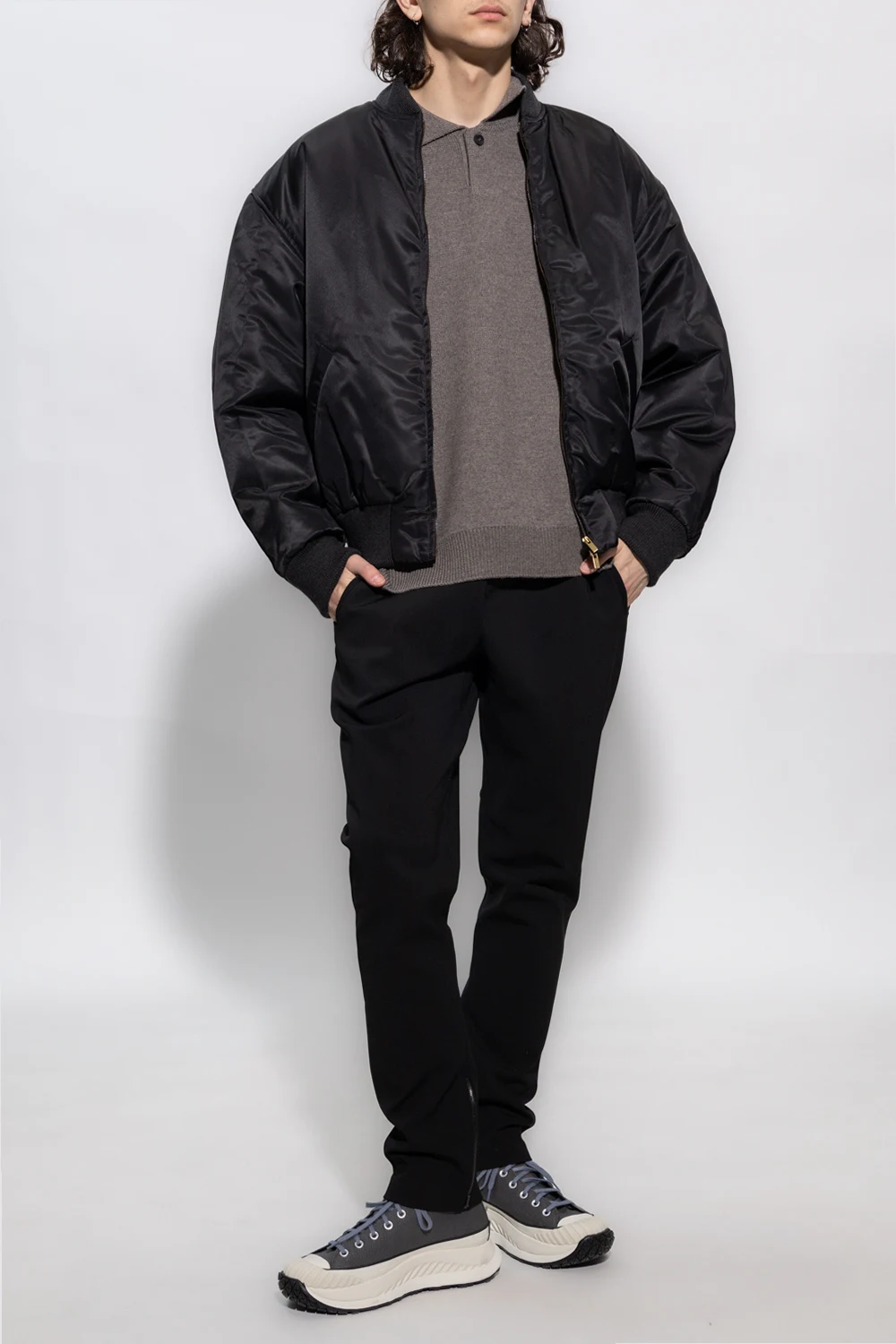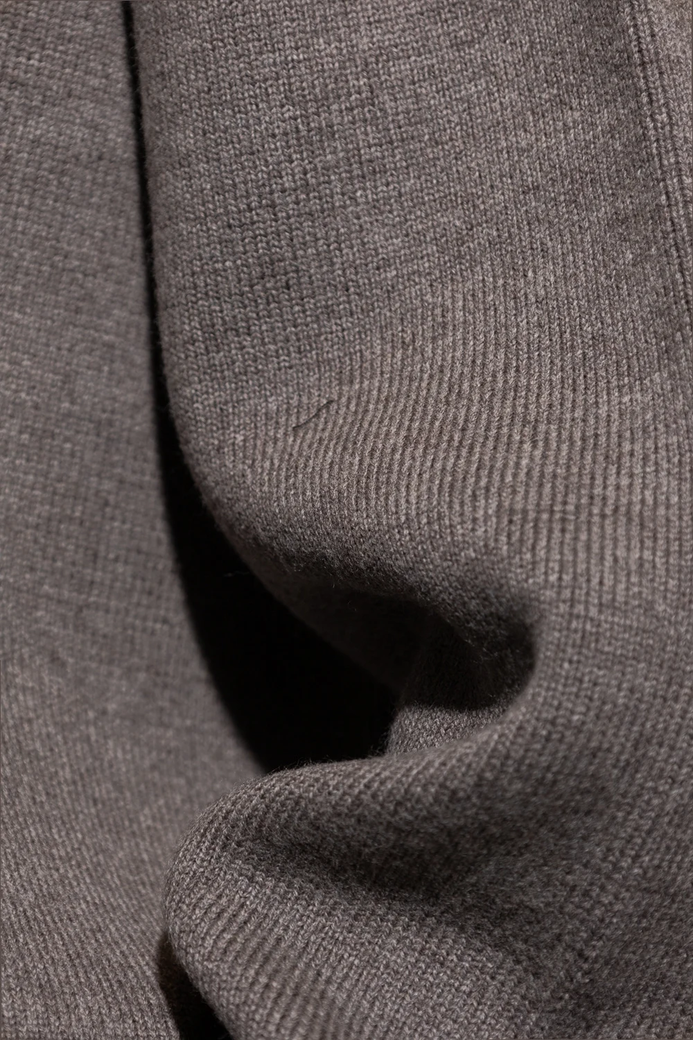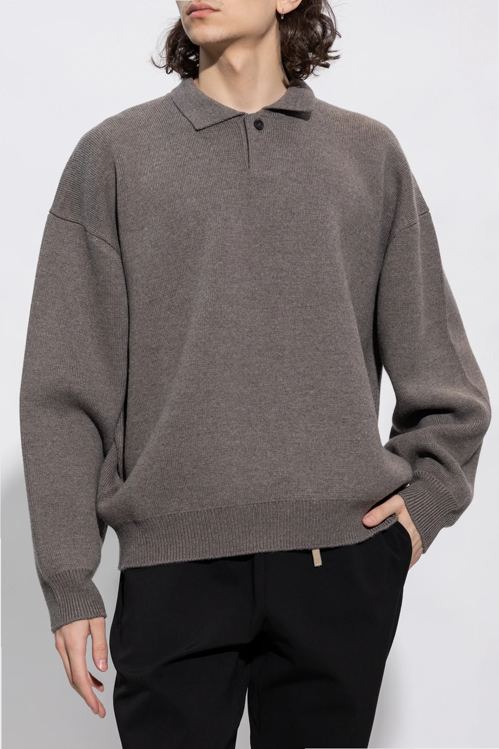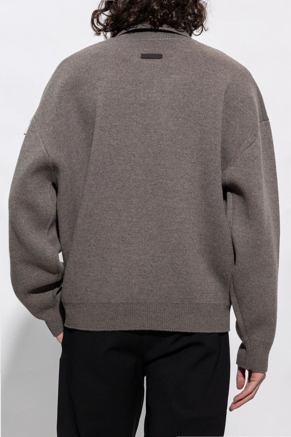 Grey sweater from Fear Of God. Crafted from virgin wool, this loose-fitting design features button fastenings, leather logo patch at the back and ribbed trims at the hem and cuffs.
