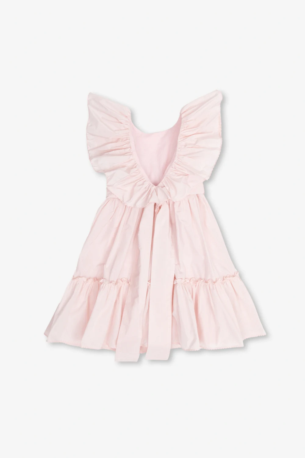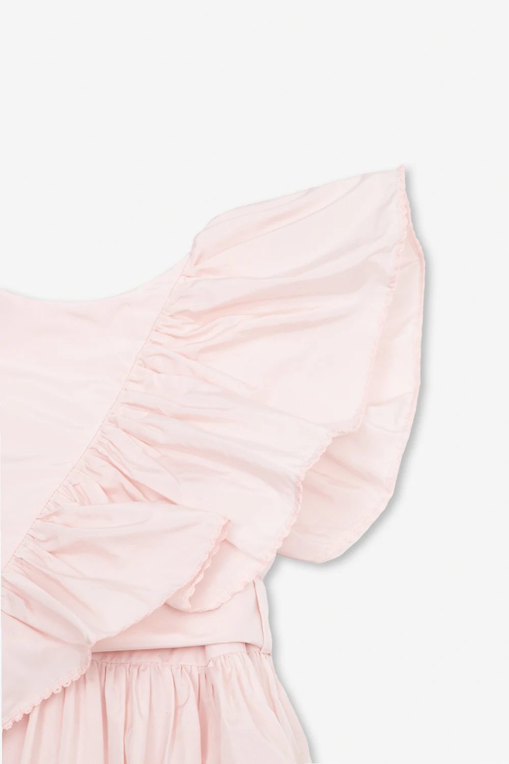 Light pink sleeveless dress from Stella McCartney Kids. Fastened with a side zip, this round neck design features decorative ruffles and removable wide belt.