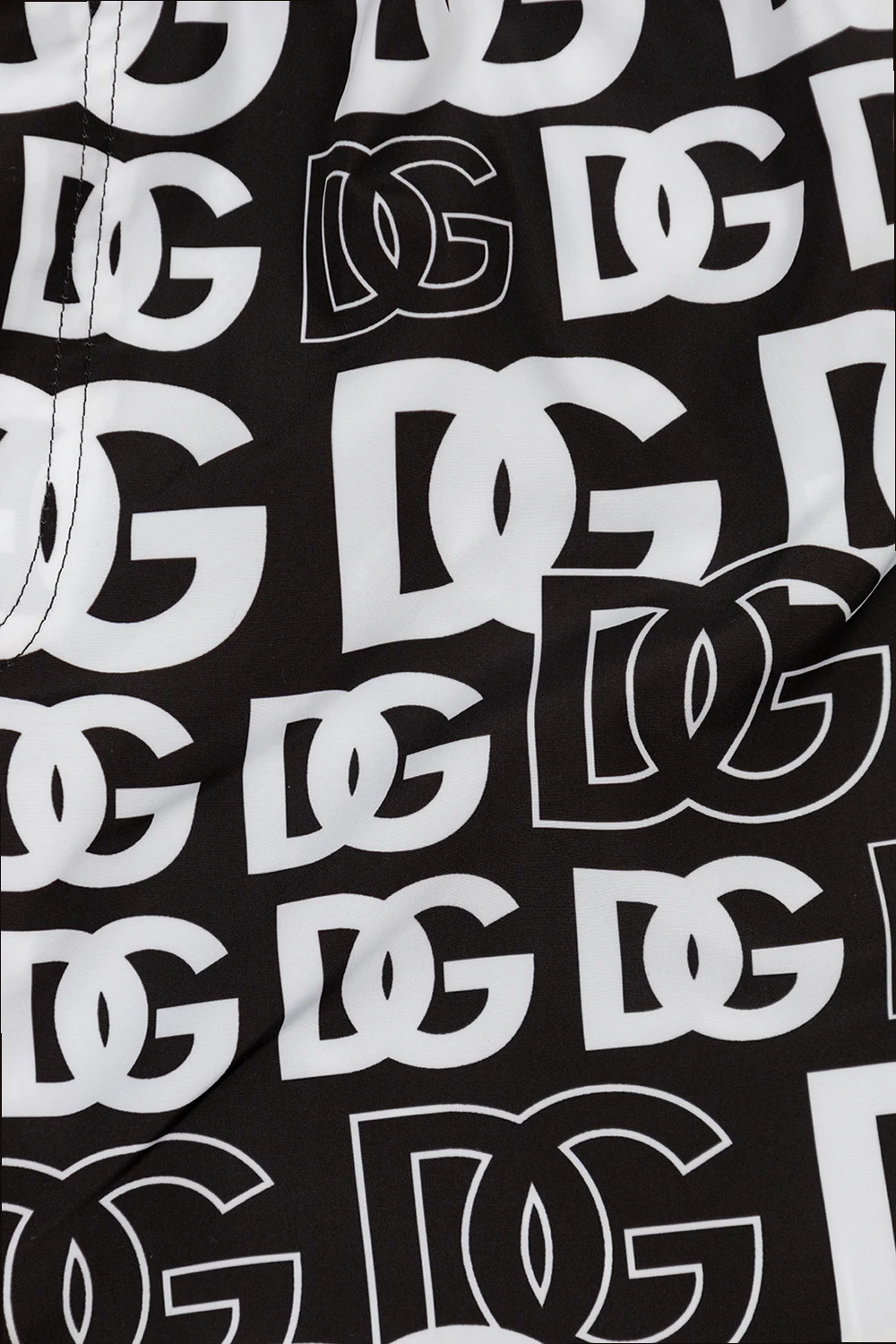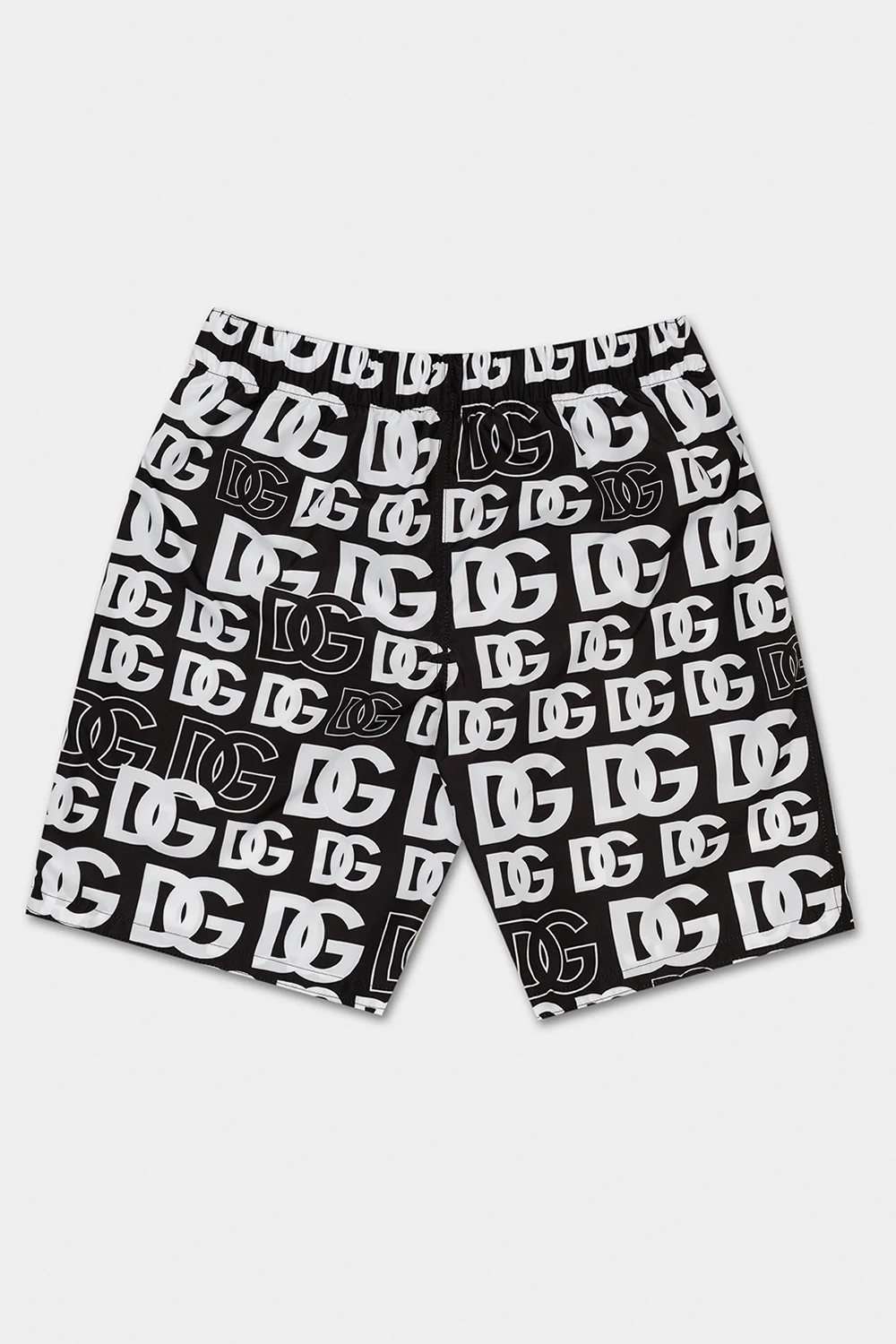 Black and white swim shorts from Dolce & Gabbana Kids. Decorated with a logo pattern, this pair has an elastic drawstring waistband and comes with a transparent protective case with a logo and zip.