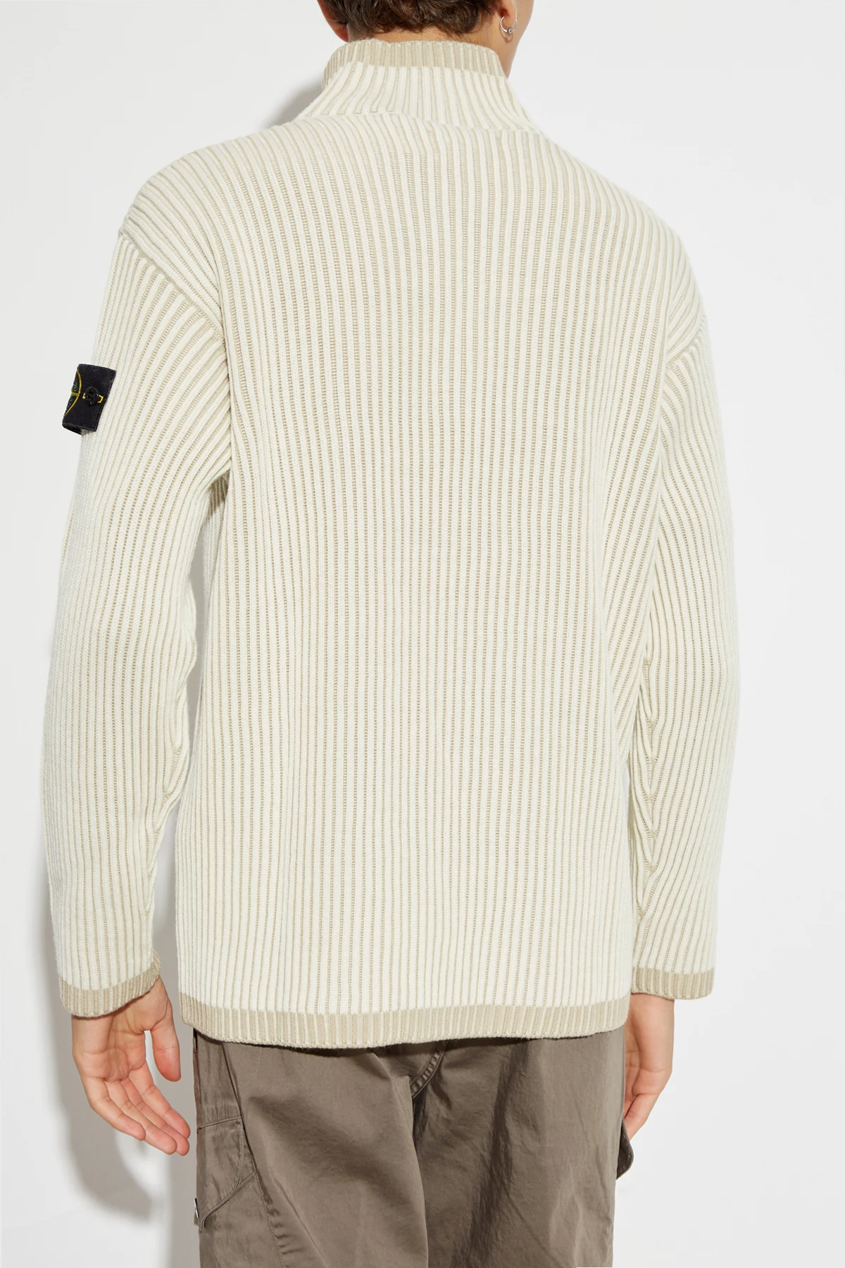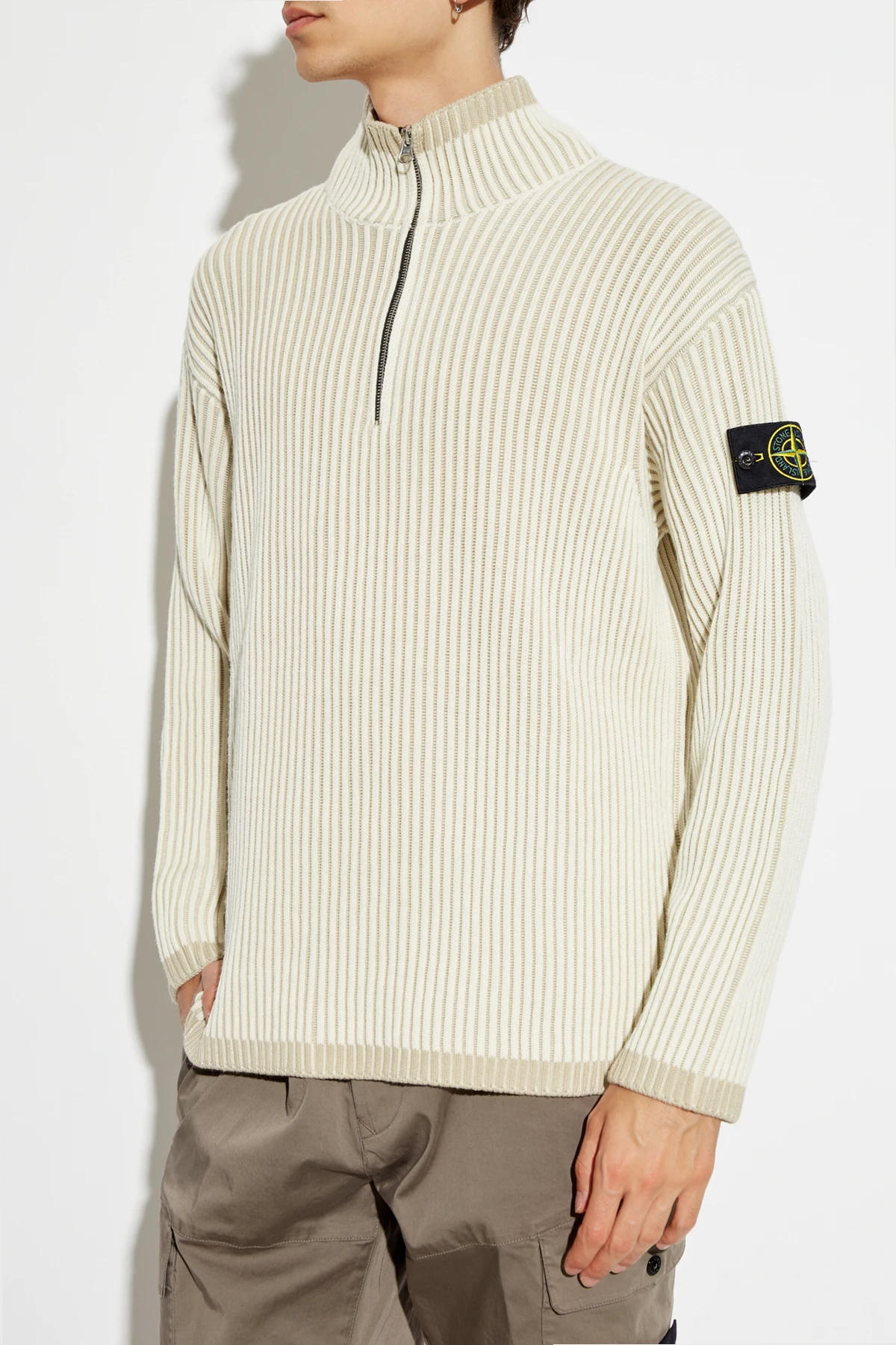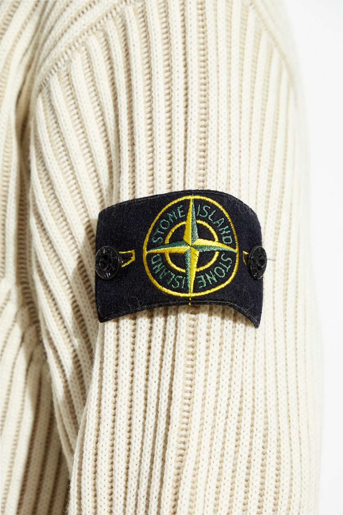 Auf dem linken Ärmel befindet sich ein charakteristischer Aufnäher mit dem Markenlogo von Stone Island in Form eines Kompasses, das das Erkennungsmerkmal dieser Luxusmarke darstellt. Der cremefarbene Farbton verleiht dem Pullover Universalität und ein raffiniertes Aussehen, das sich ideal mit verschiedenen Garderobenelementen kombinieren lässt.