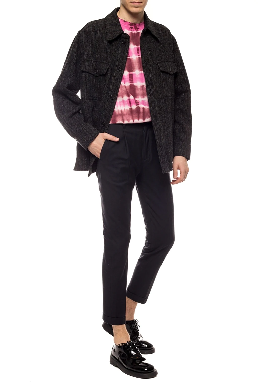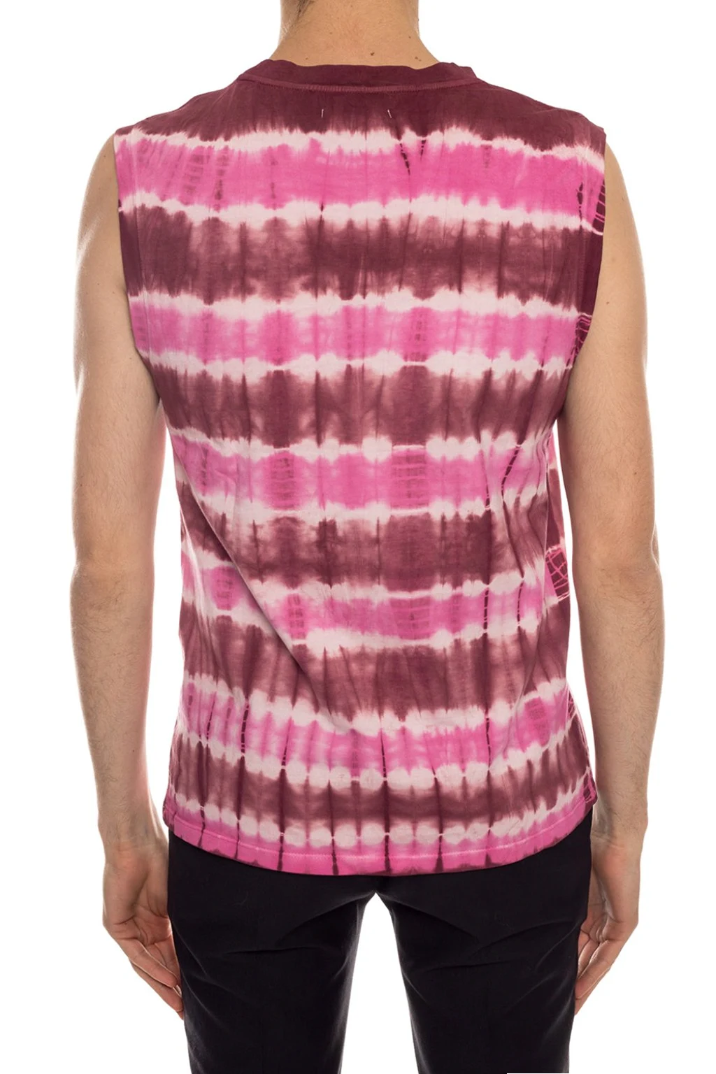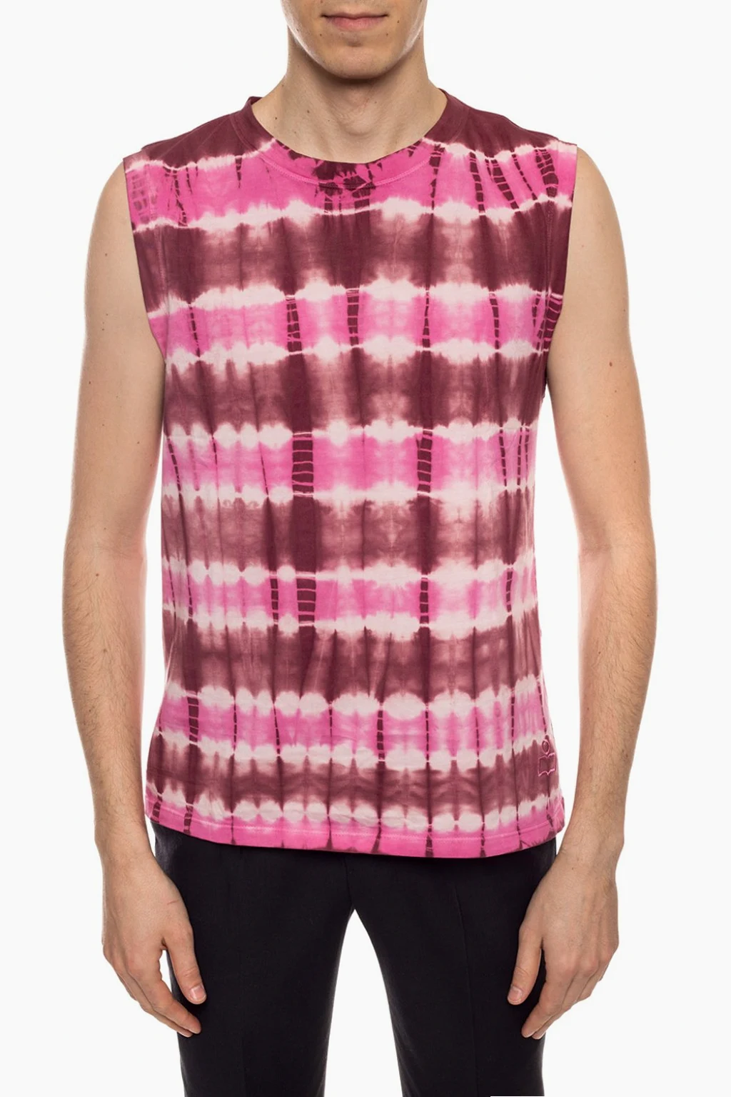 Pink patterned sleeveless top from Isabel Marant Étoile. Decorated with a pink logo embroidery. Round neck.