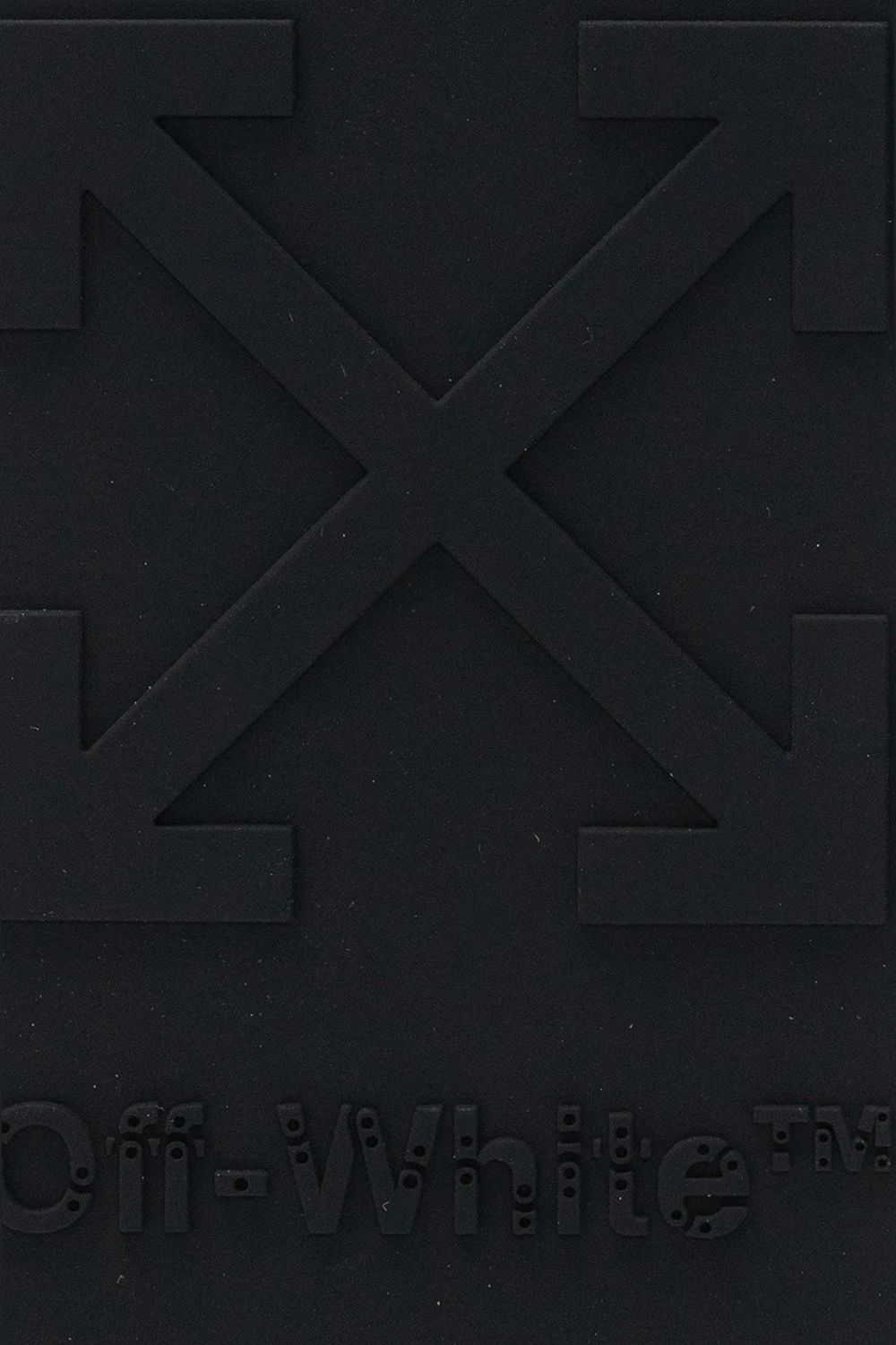 Black iPhone 12 Mini case from Off-White. Designed in strong material to guard your phone on a daily basis, this item showcases an embossed logo pattern.
