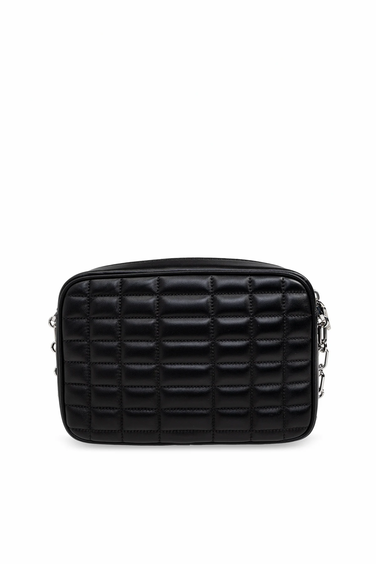 Mit einem langen, verstellbaren Riemen, der mit Kettenelementen versehen ist, bietet die 'Tribeca' Tasche Komfort beim Tragen über der Schulter oder quer über den Körper, während sie gleichzeitig eine Prise Eleganz hinzufügt. Der metallene Verschluss an der Vorderseite, möglicherweise verziert mit dem Logo des Designers, sichert nicht nur den Inhalt, sondern dient auch als einzigartiges dekoratives Detail. Die gesteppte Textur, ein Kennzeichen luxuriöser Marken, unterstreicht die hohe Qualität der Verarbeitung und die Liebe zum Detail.