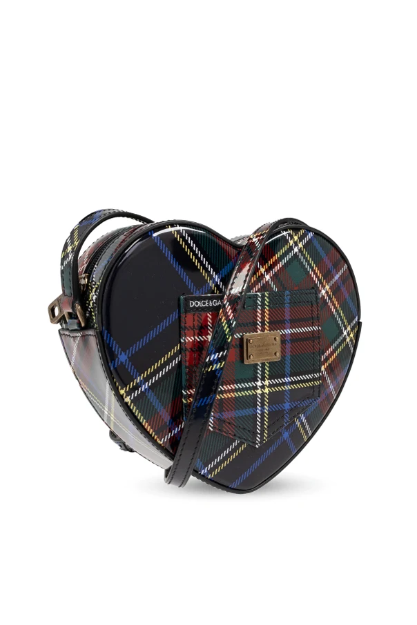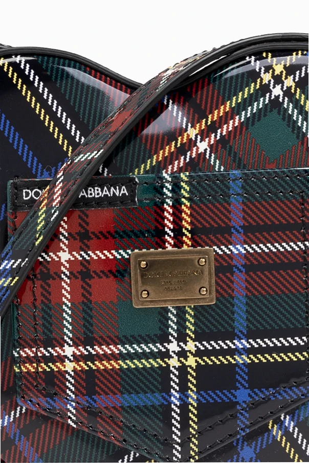 Wir präsentieren Ihnen die Herzförmige Schultertasche aus der exklusiven Modekollektion Dolce & Gabbana Kids . Diese einzigartige Tasche, verziert mit einem Tartanmuster in den Farben Rot, Grün, Blau und Gelb, zieht durch ihre Einzigartigkeit und Eleganz alle Blicke auf sich.