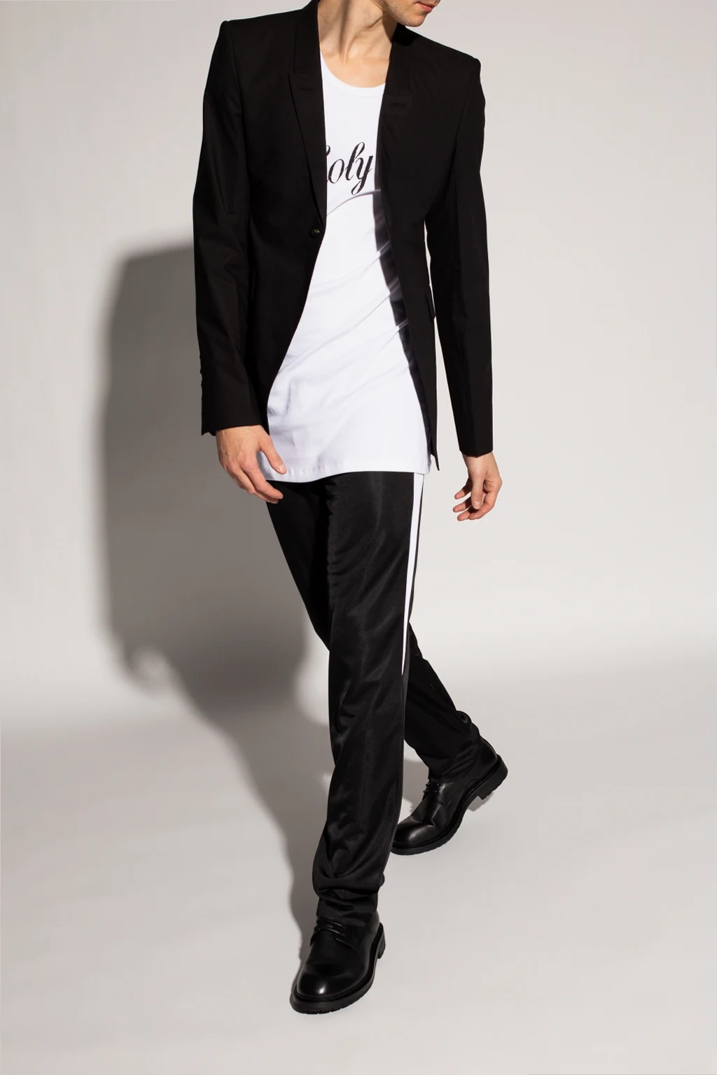 Black ‘Santiago’ shoes from Ann Demeulemeester. Crafted from leather, this lace-up design rests on a black rubber sole.