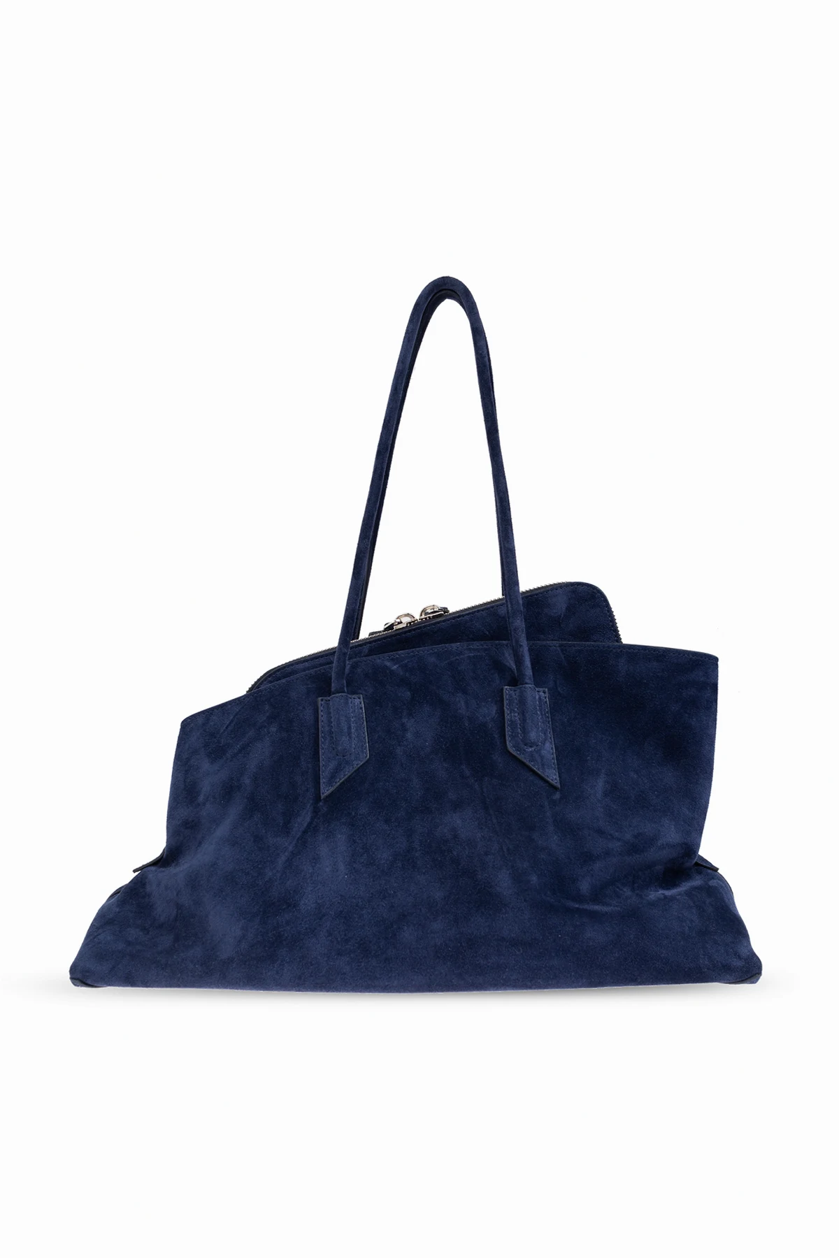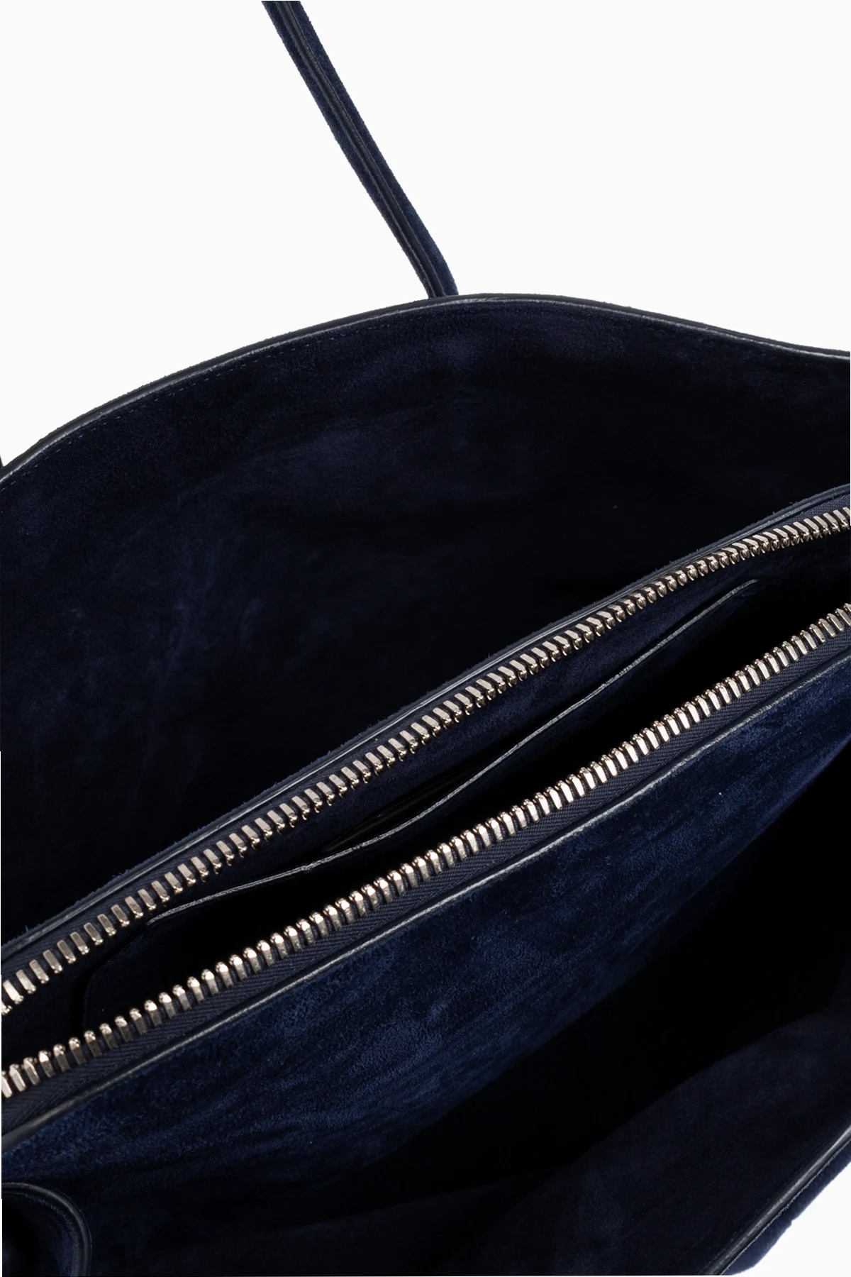 Gefertigt aus hochwertigem marineblauem Wildleder, strahlt die Tasche Eleganz und Luxus aus. Auf der Außenseite befinden sich subtile dekorative Nähte, die ihr einen einzigartigen Charme verleihen. Das Innenleben, in harmonierendem Marineblau gehalten, bietet drei funktionale Fächer sowie einen Reißverschluss, der Komfort und Sicherheit bei der Aufbewahrung gewährleistet.