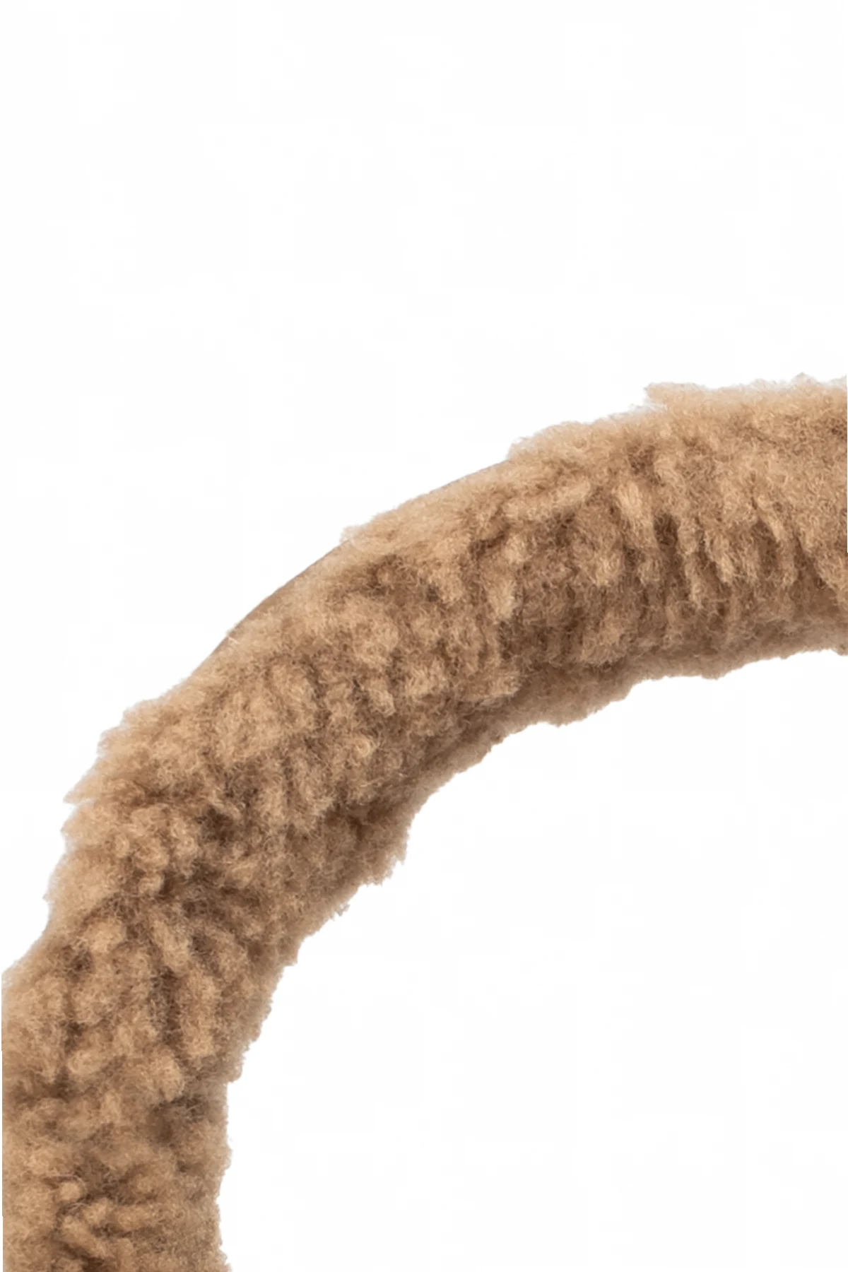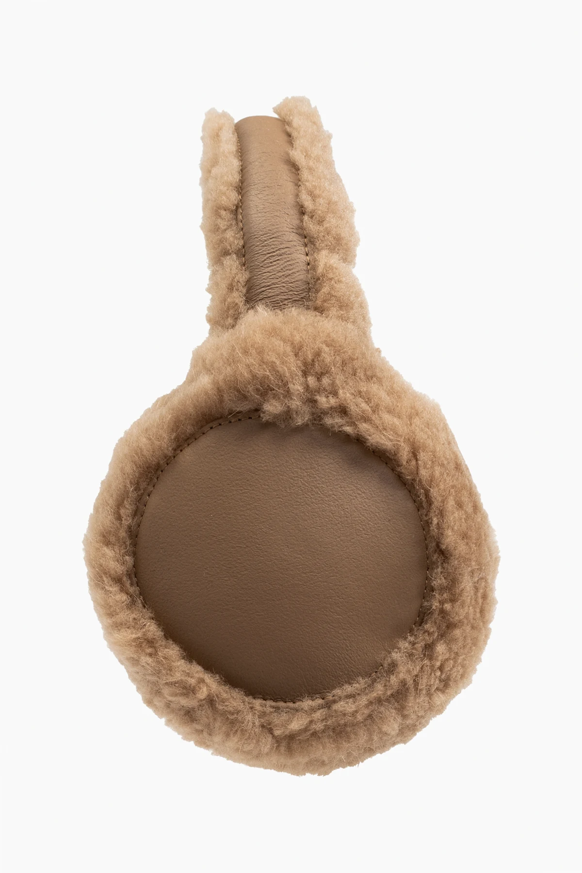 Das Produkt zeichnet sich durch seine traditionelle Form mit einem über den Kopf verlaufenden Bügel aus. Runde Ohrmuscheln, die vollständig mit weichem, beigefarbenem Material in Felloptik bedeckt sind, bieten hervorragenden Kälteschutz und hohen Tragekomfort. Die Innenseite der Ohrmuscheln ist aus glattem, braunem Leder gefertigt und verleiht Eleganz sowie einen dezenten Kontrast.