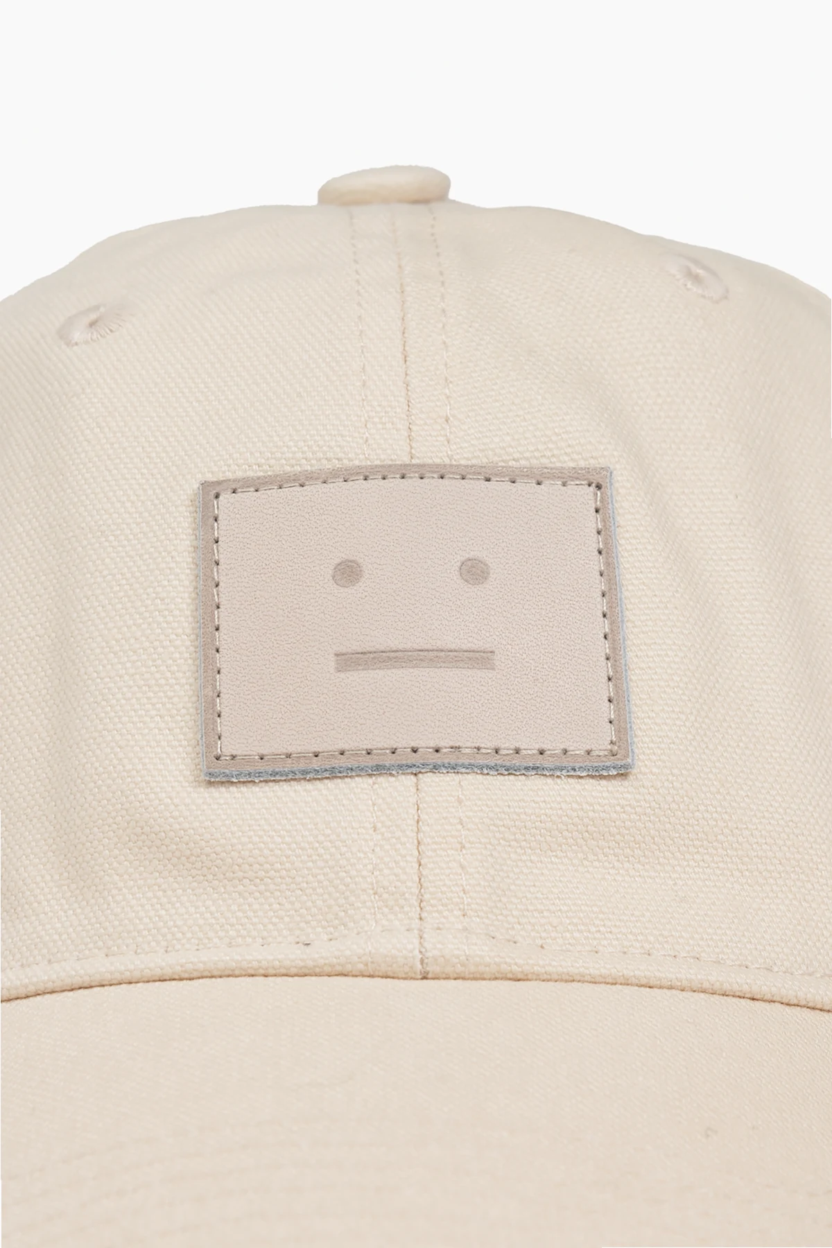 Das charakteristische Aufnäher mit minimalistischem Gesichtsausdruck (zwei Punkte und ein horizontaler Strich) auf der Vorderseite der Kappe ist ein dezentes Erkennungszeichen der Marke. Die hohe Verarbeitungsqualität wird durch sorgfältige Nähte und sechs Belüftungslöcher betont, die für optimale Luftzirkulation sorgen.