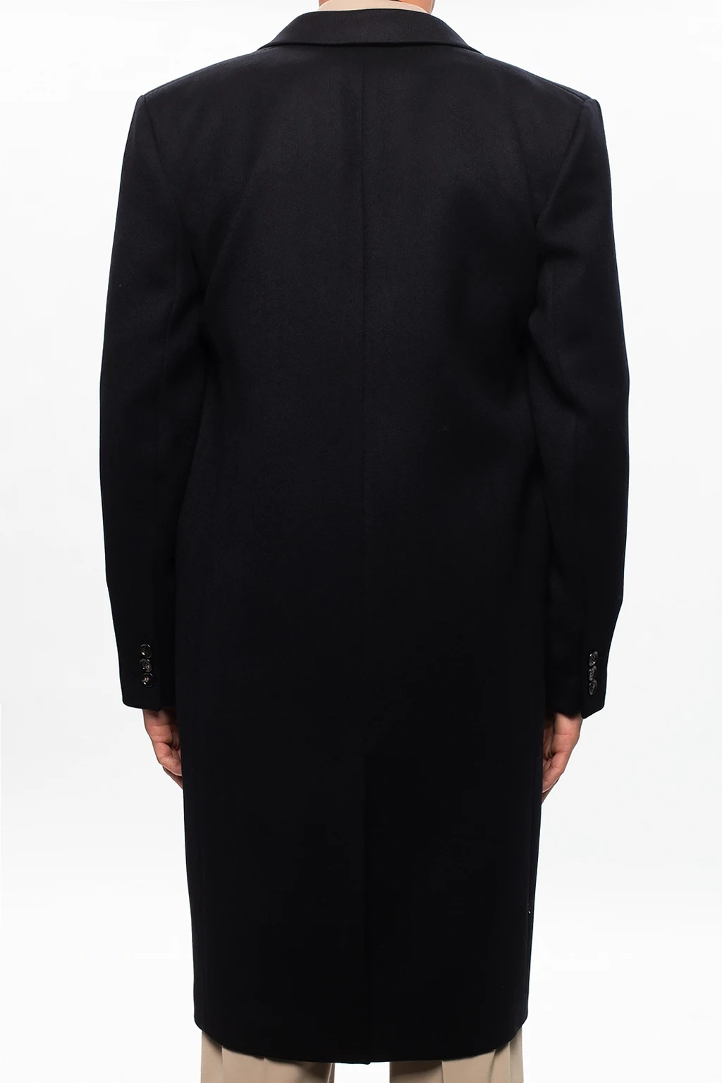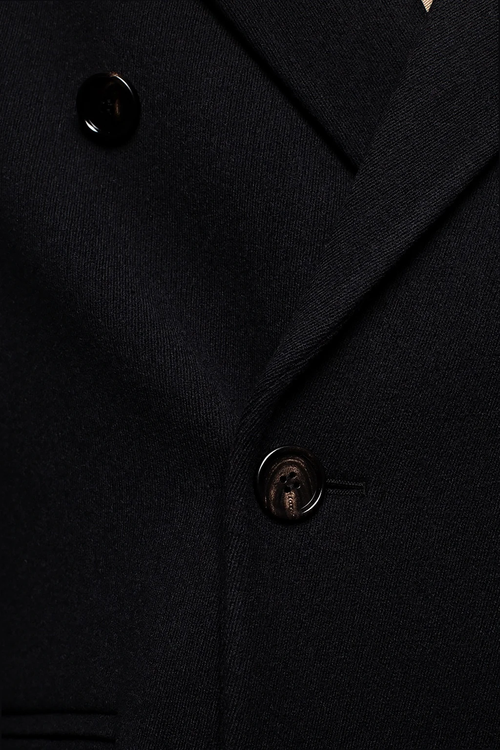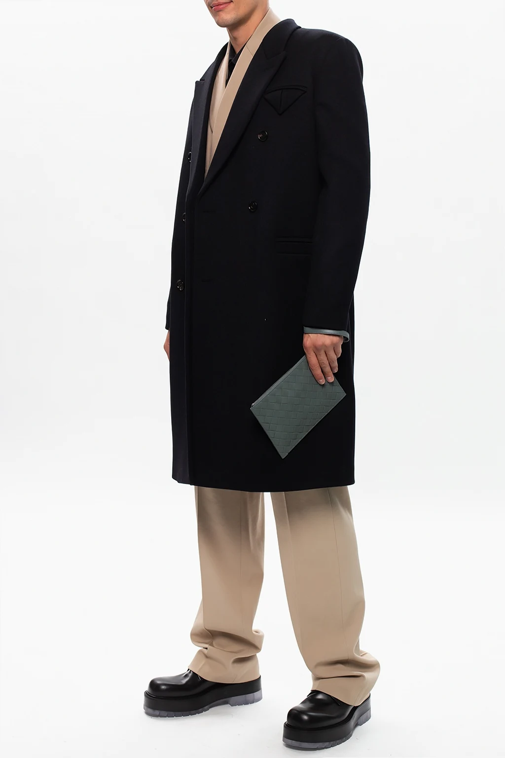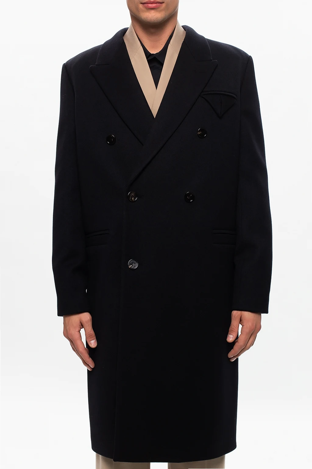 Black coat from Bottega Veneta. Crafted from woo, this double-breasted piece of outerwear is complete with button closing and three front pockets.