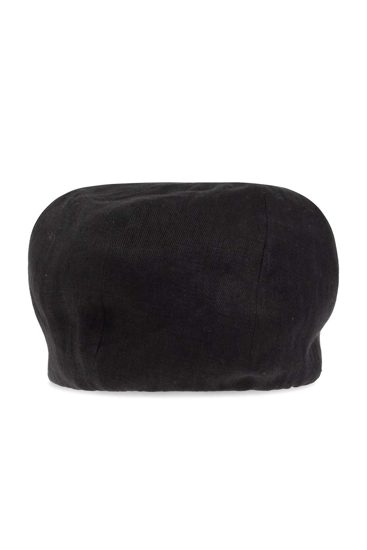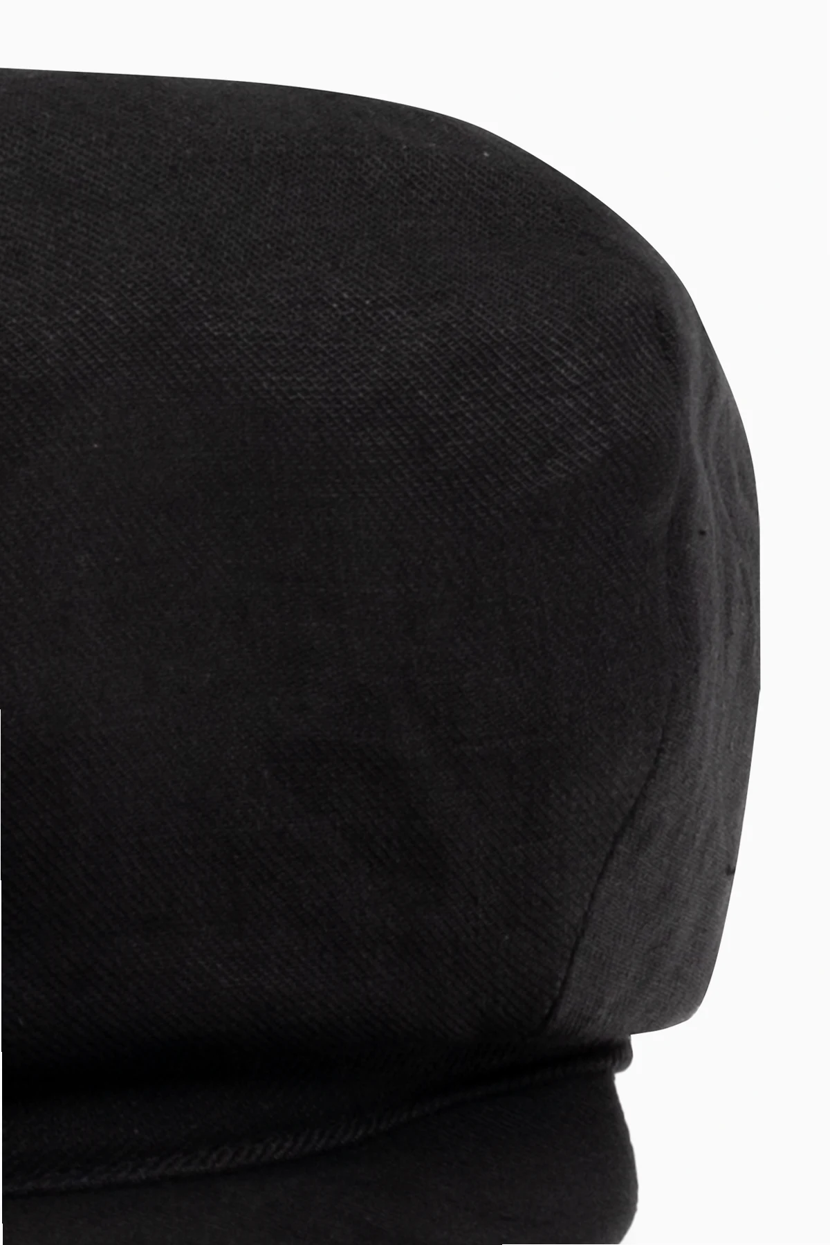 Black flat cap with a structured peak from Yohji Yamamoto. Made of linen.