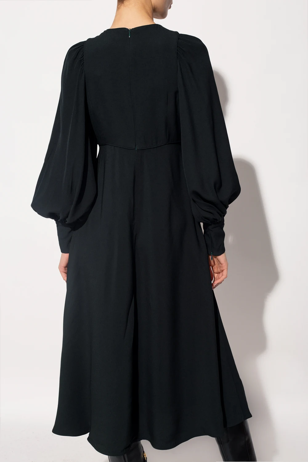 Dark green dress from Zimmermann. Fastened with a back zip, this round neck design has decorative cut-outs, two slip pockets and long sleeves.
