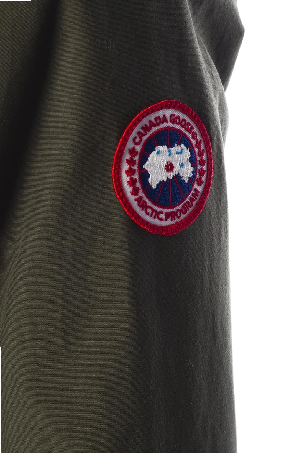 Green 'Brossard' jacket featuring drawstring hood from Canada Goose. Two-way zip fastening. Colourful patches with embroidered logo. 2 slip pockets and 2 zip pockets at front. Drawstring hem. Long sleeves with snap fastening cuffs. Dark grey metal hardware.