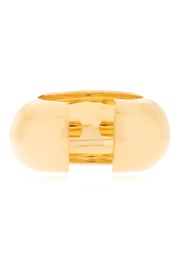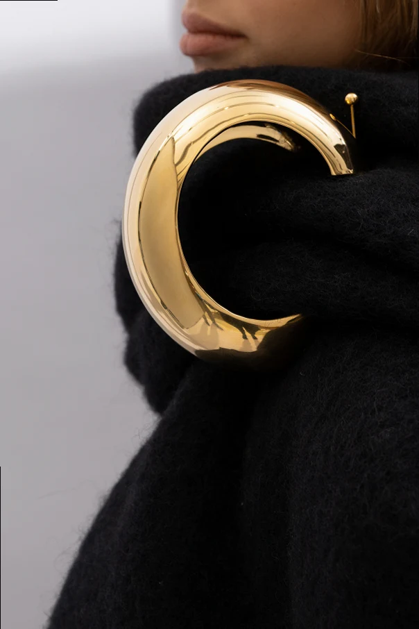 Gold-tone brooch from Saint Laurent. Made of brass, this item showcases the brand's logo and a pin closure.