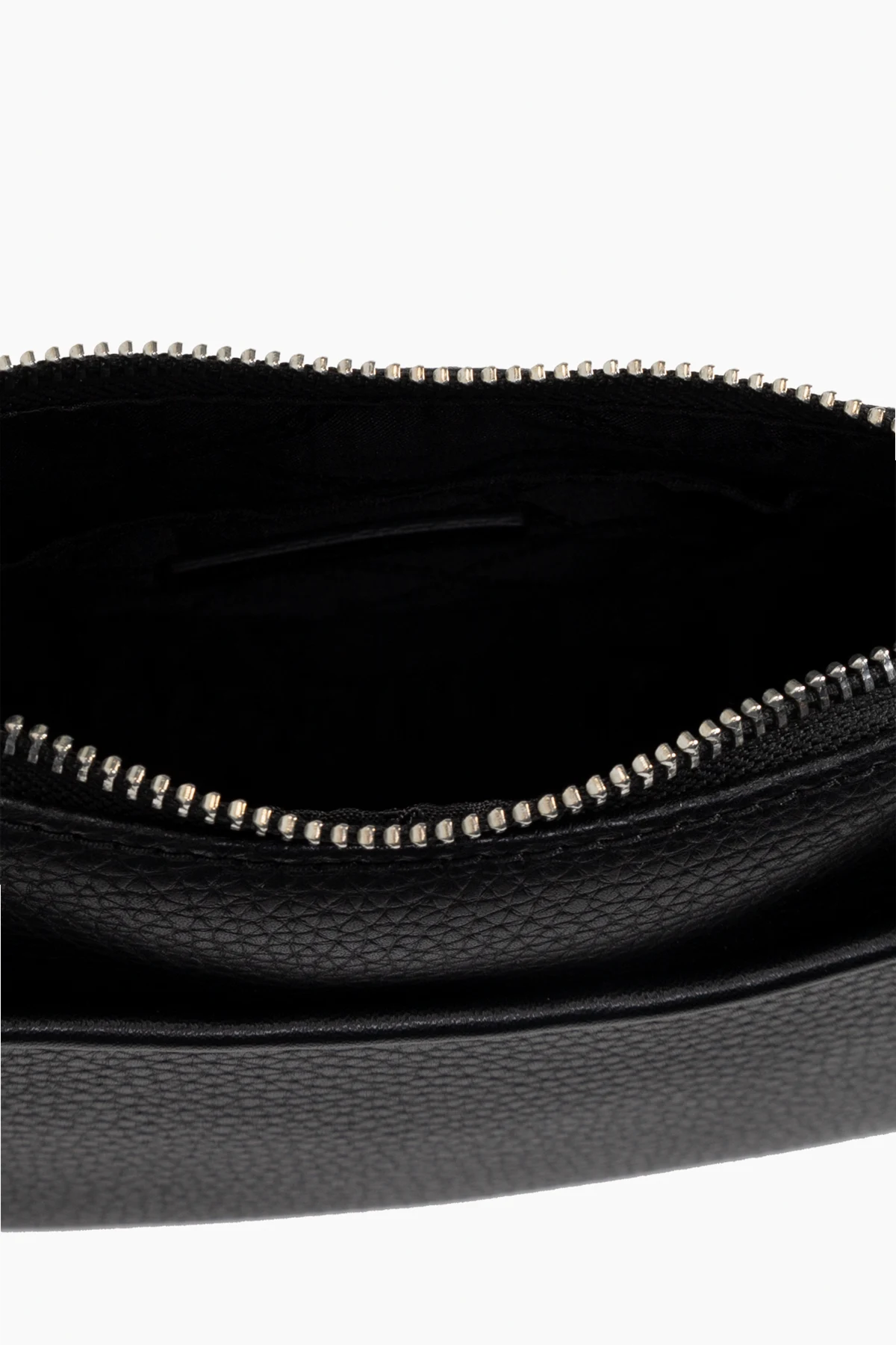 Charakteristisch für dieses Modell sind der breite, verstellbare Schulterriemen mit robusten Metallbeschlägen und das silberne Designer-Logo, diskret auf der Vorderseite der Tasche platziert. Das luxuriöse Finish spiegelt sich auch im Inneren wider, wo ein glatter, die Innenseite auskleidender Stoff, ein Hauptfach sowie eine Einschubtasche für Komfort und Ordnung sorgen. Zusätzlich enthält das Set ein passendes Portemonnaie, ebenfalls verziert mit dem Designer-Logo, was es ermöglicht, ein kohärentes und elegantes Gesamtensemble zu kreieren.