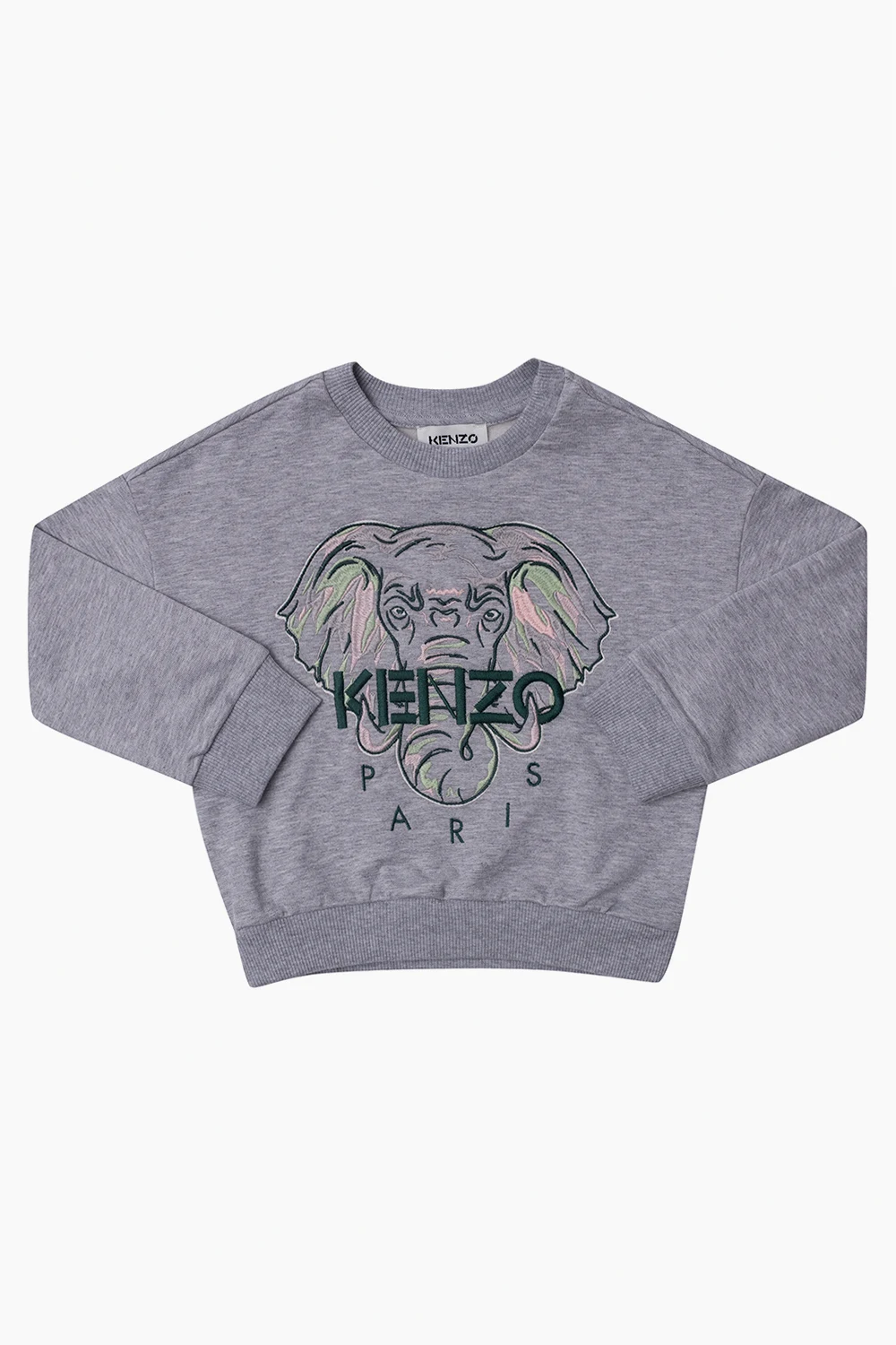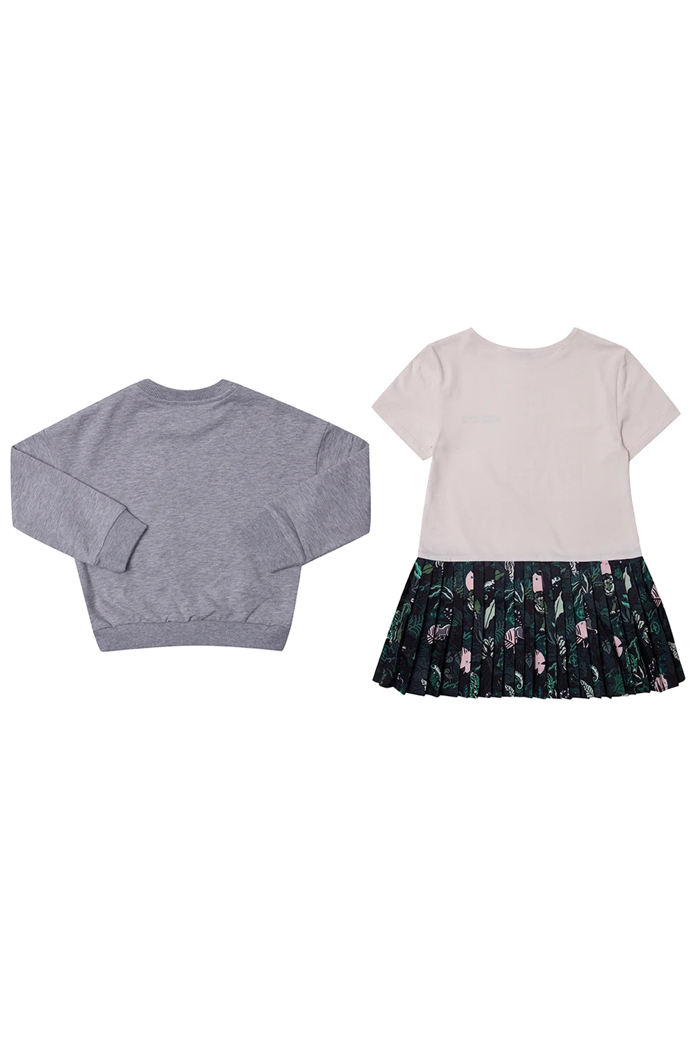 Multicoloured apparel set from Kenzo Kids. Crafted from cotton, it includes a crewneck sweatshirt with an embroidered logo and ribbed trims on the bottom hem and cuffs and a pleated dress with short sleeves, logo detailing and a fauna & flora print.