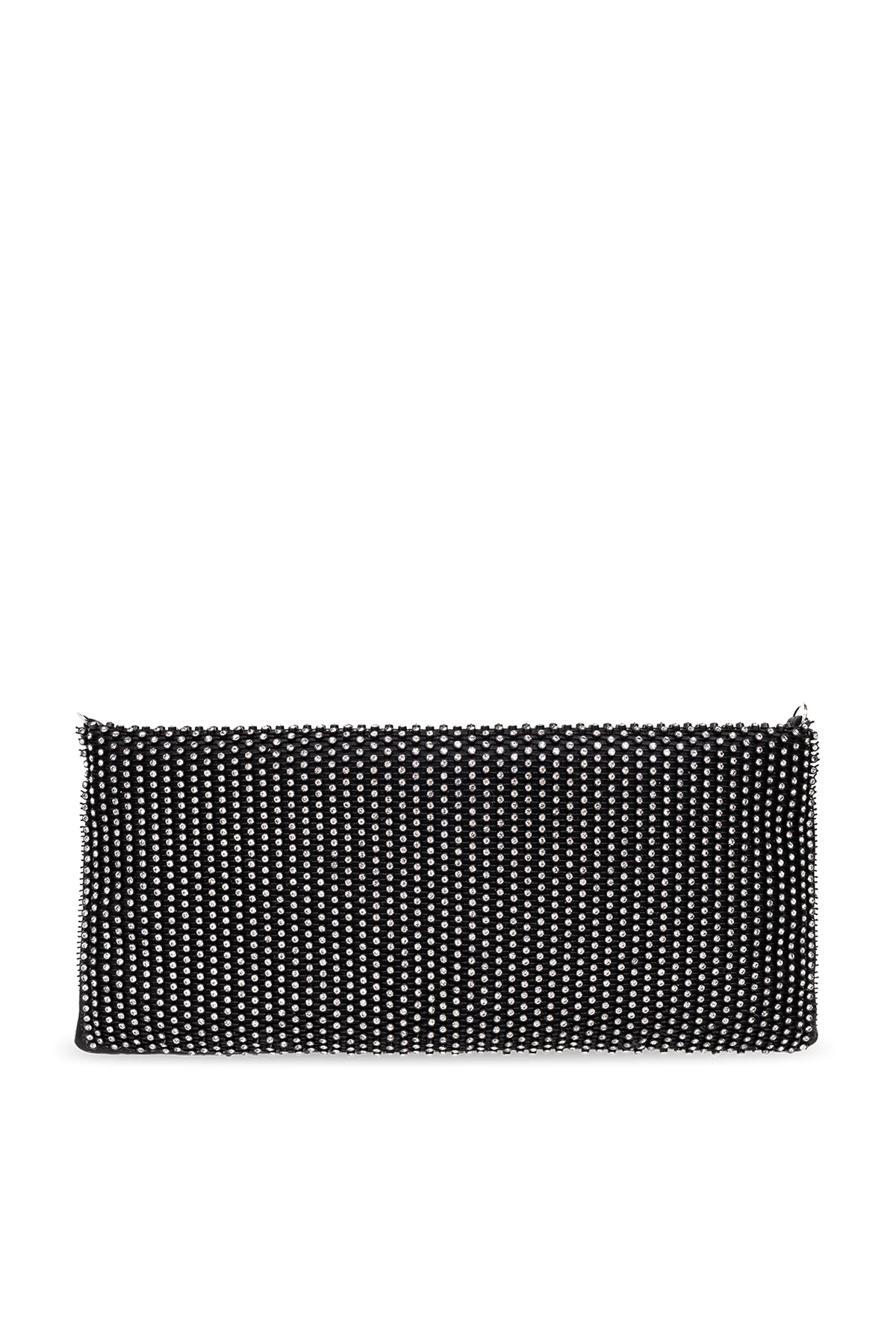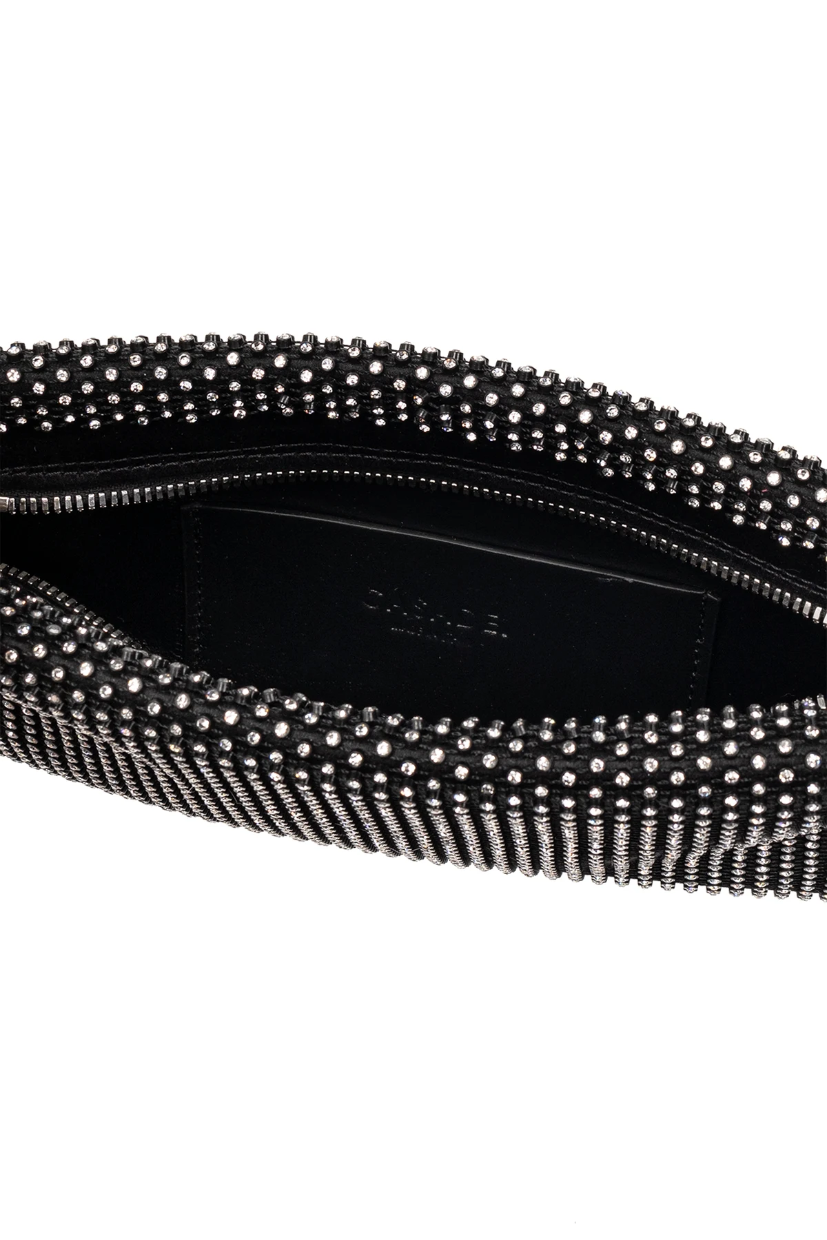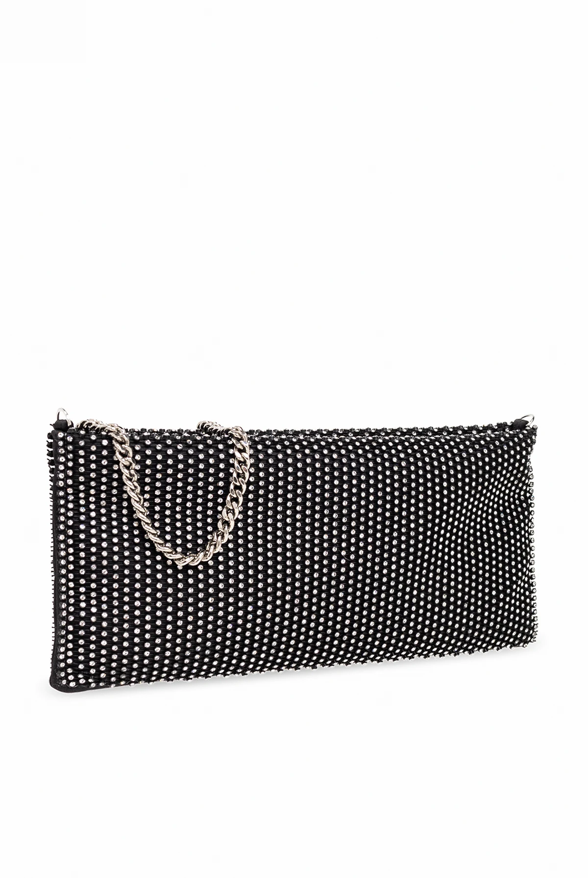 Black shoulder bag from Casadei. Crafted from satin and glossy crystal mesh, this design fastens via a zip and features a detachable chain shoulder strap, silver-tone metal hardware and one internal compartment.